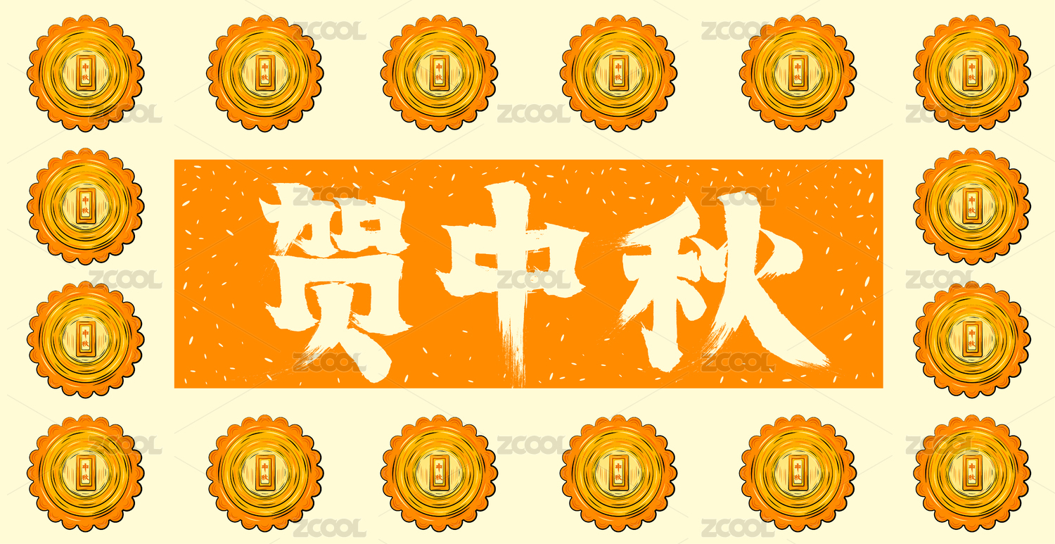 贺中秋国潮手绘月饼阵列插画矢量书法字
