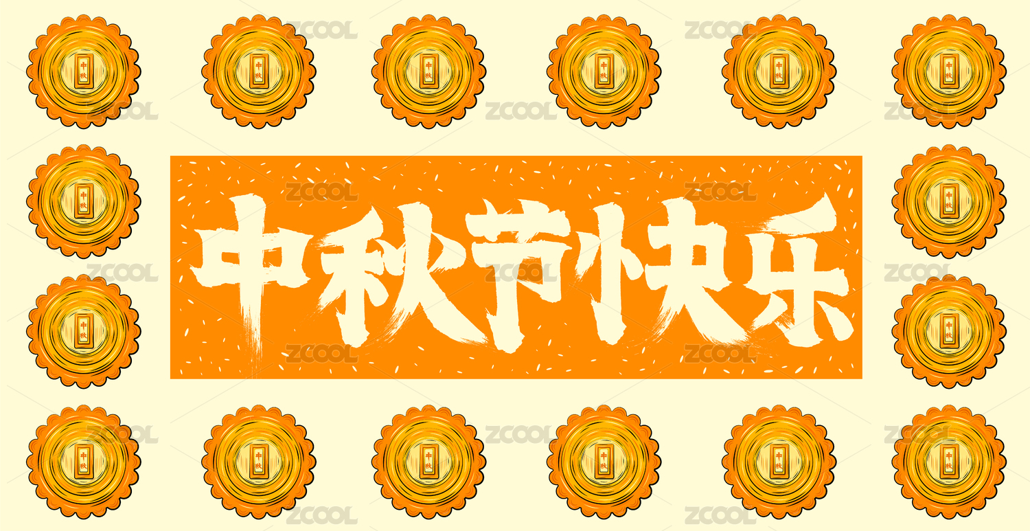 中秋节快乐国潮手绘月饼阵列插画矢量书法字