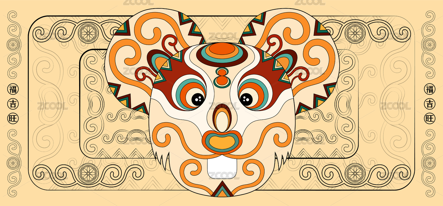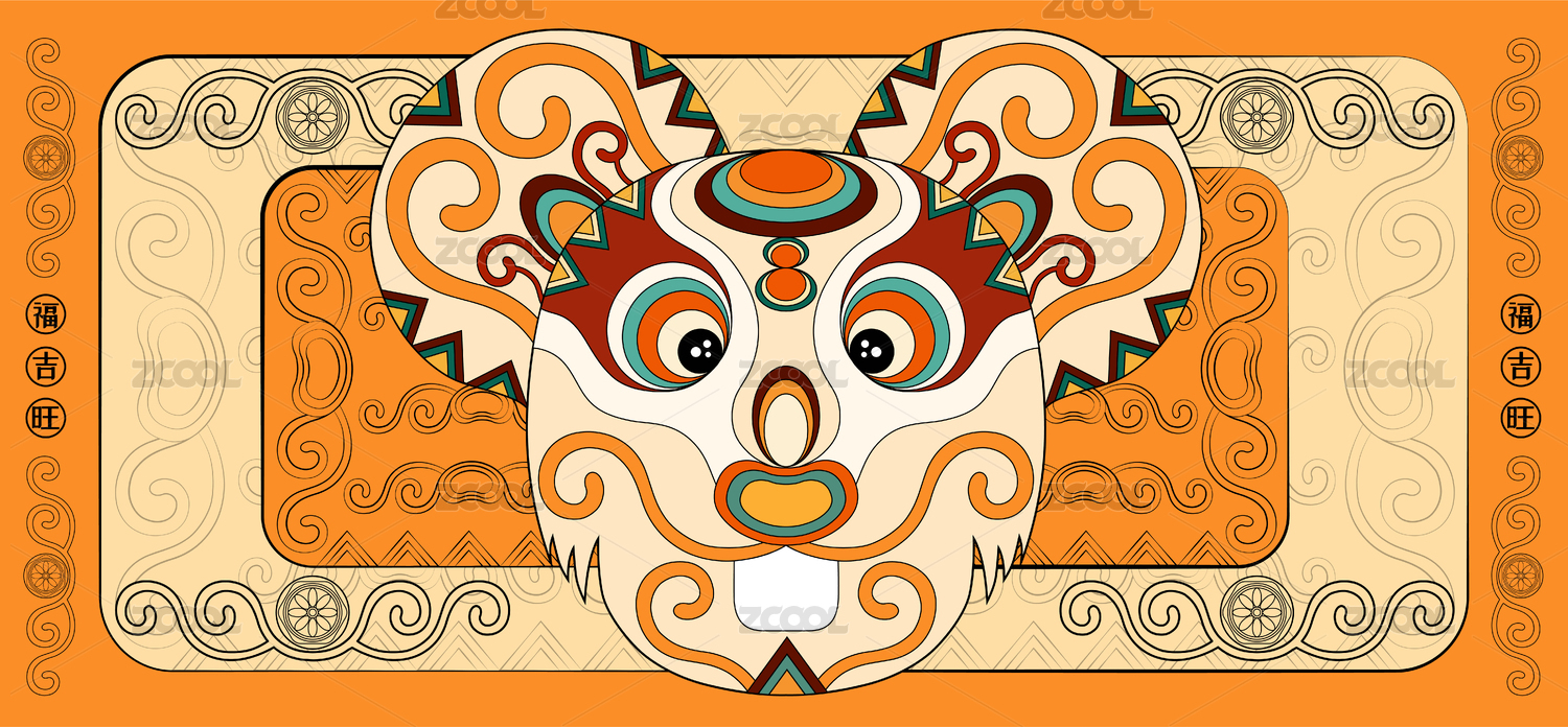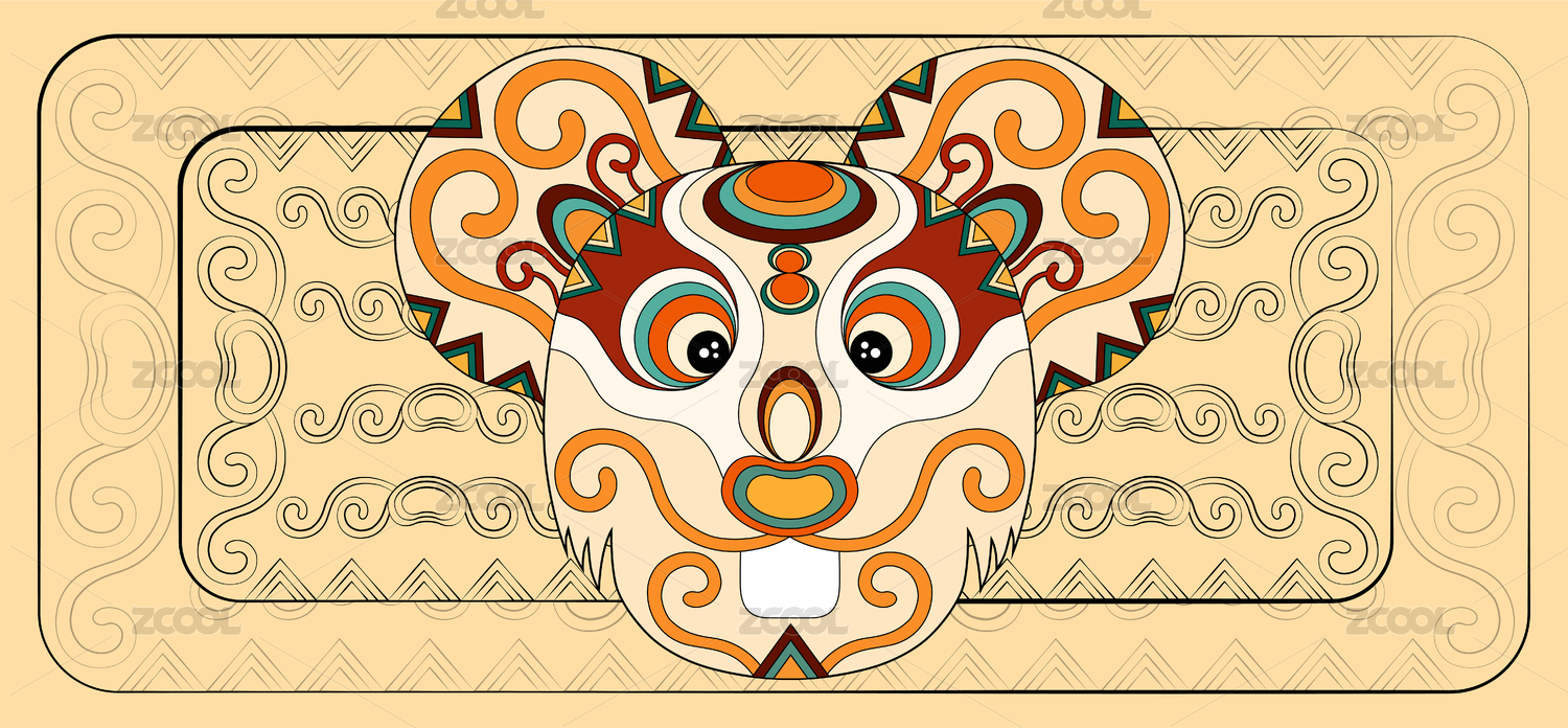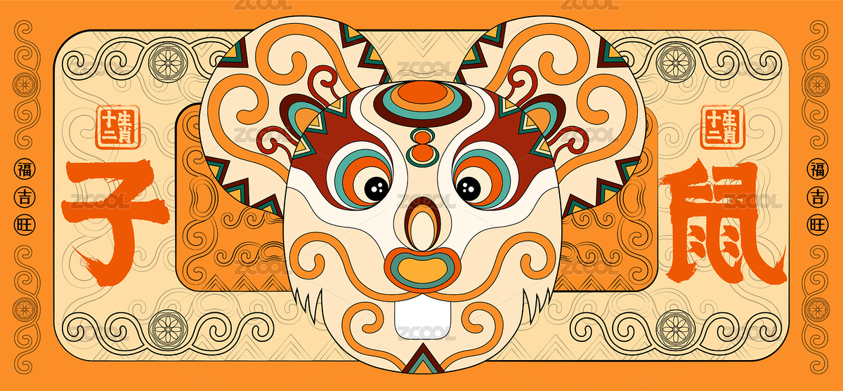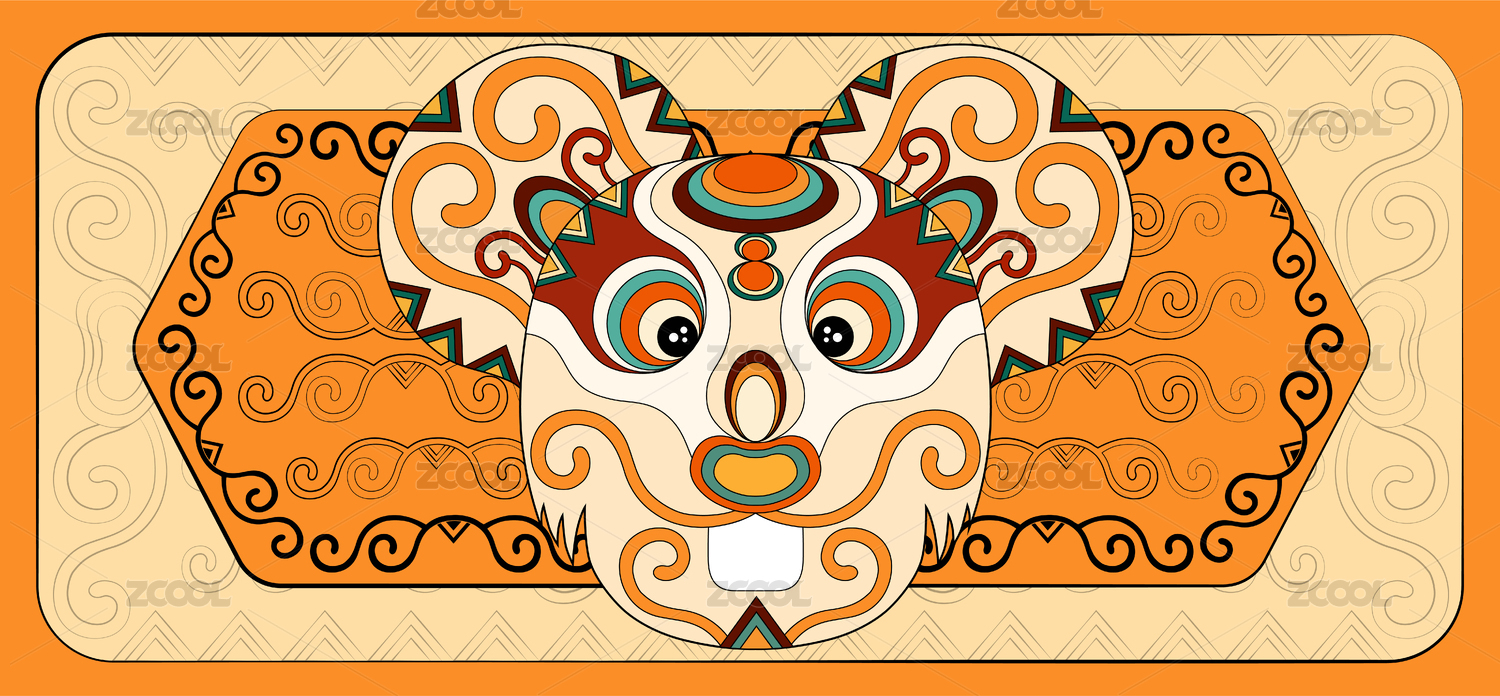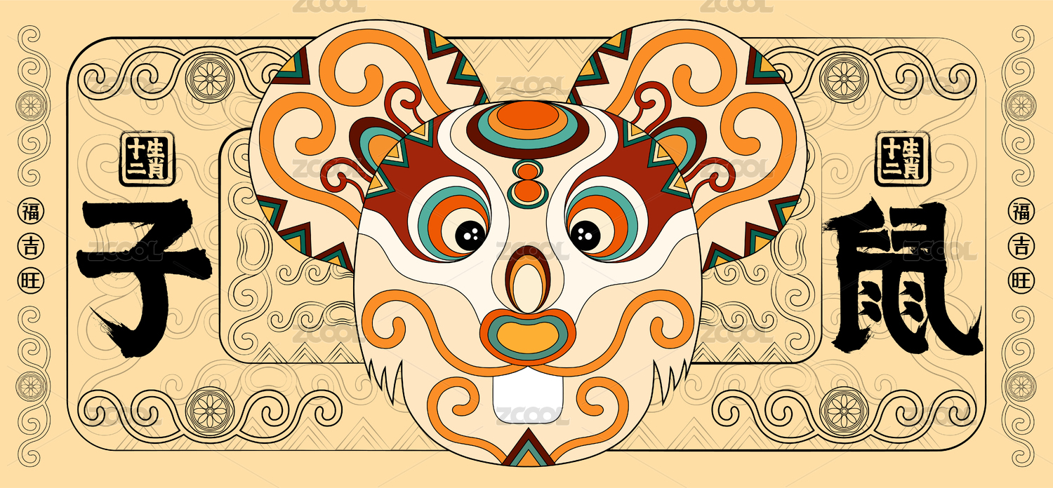 子鼠十二生肖国潮传统艺术装饰纹样卡通形象