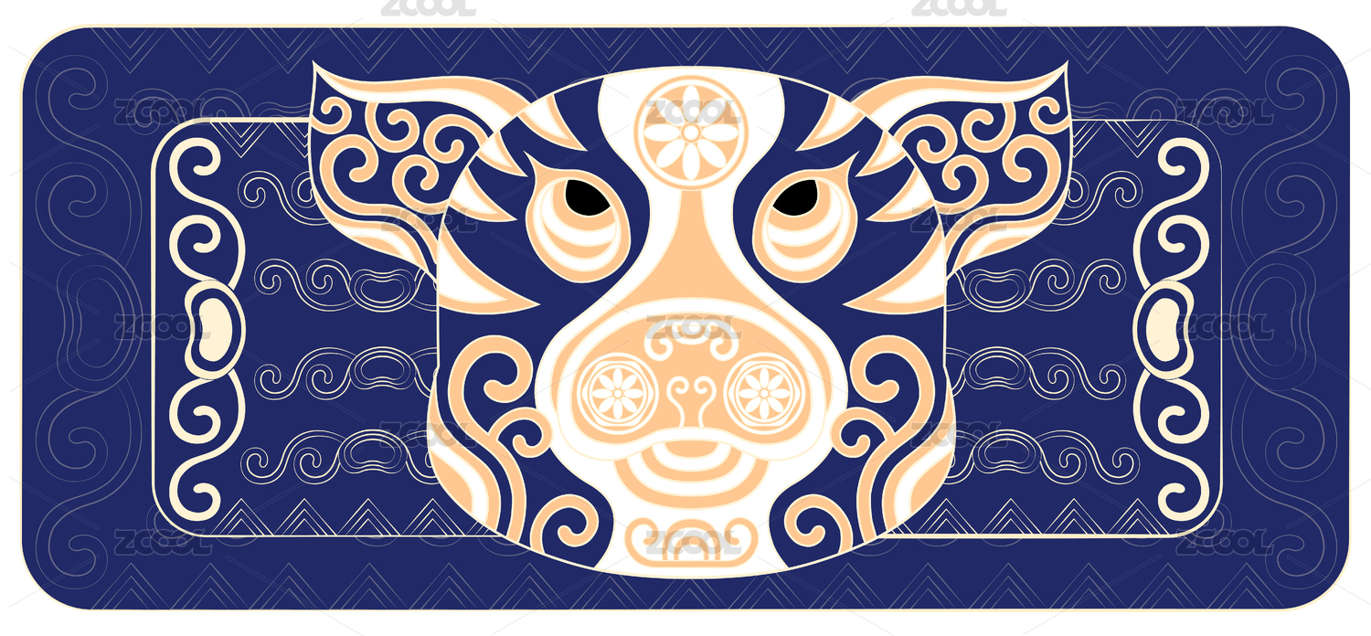 猪十二生肖潮流装饰纹样国潮卡通形象