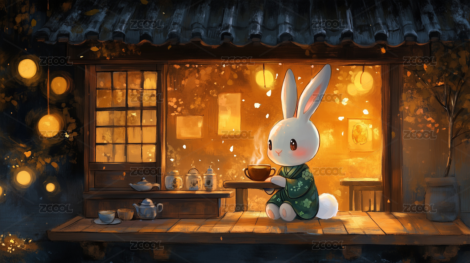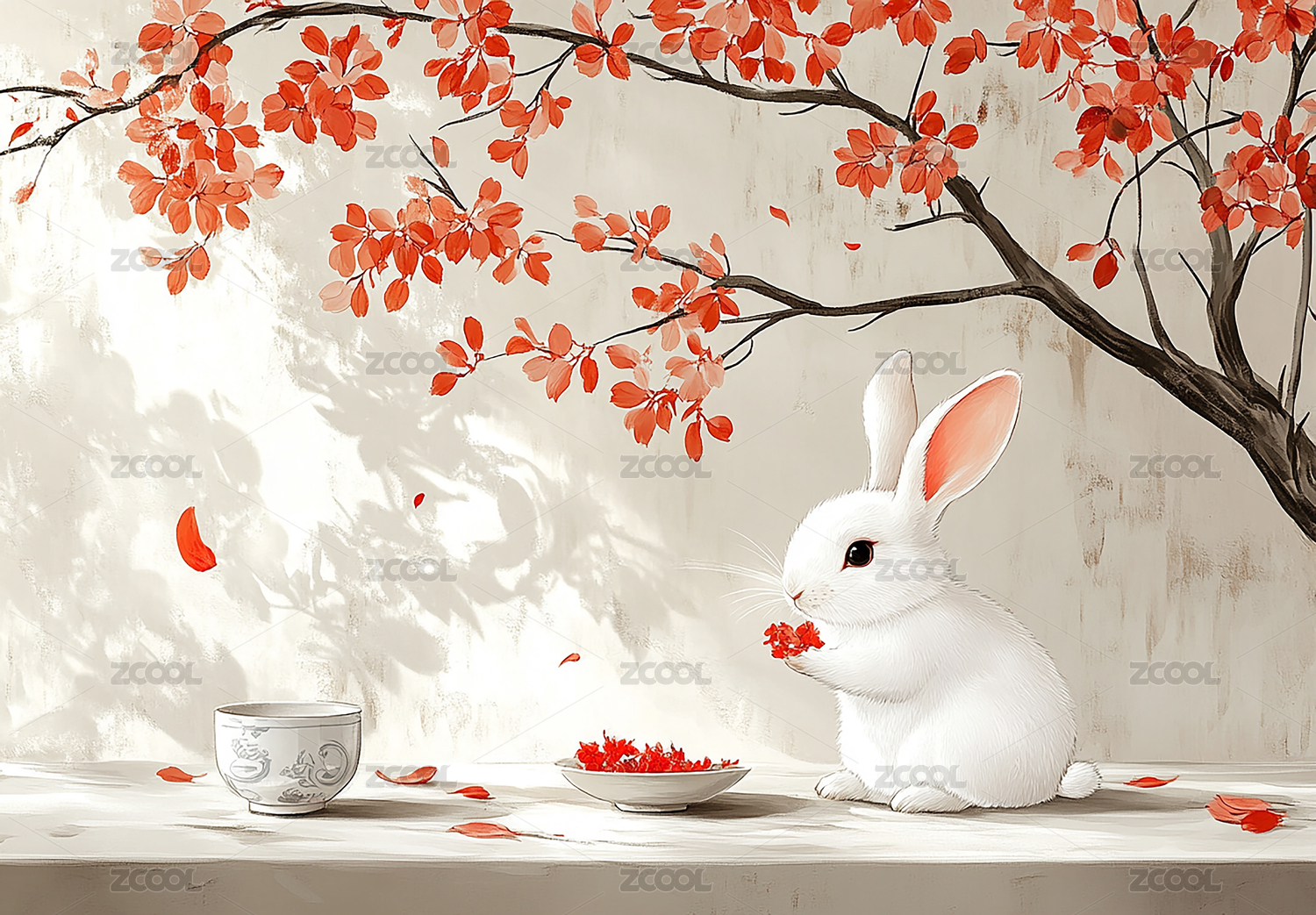 桂花树下的兔子插画