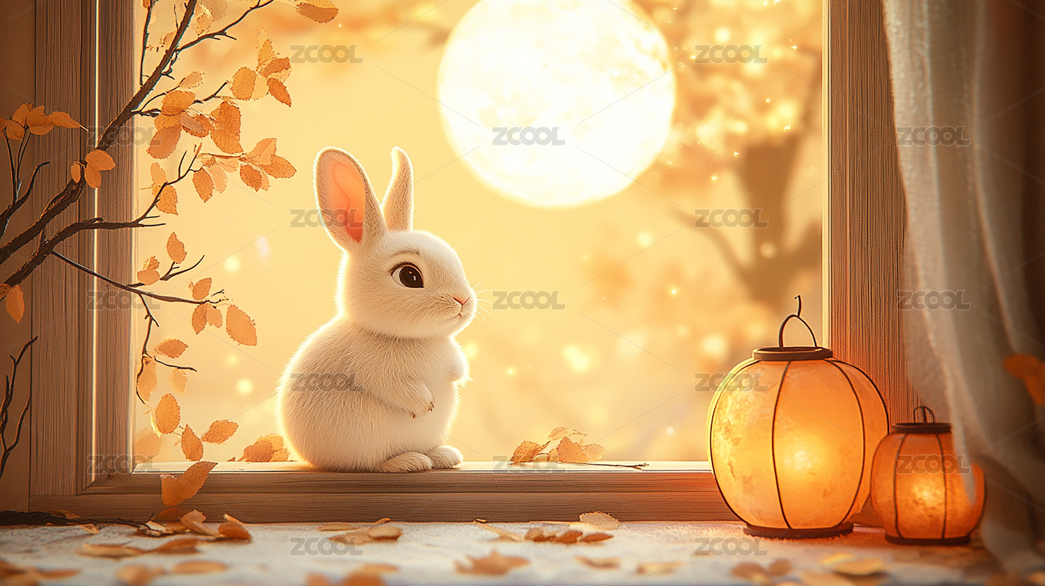 中秋满月下的玉兔