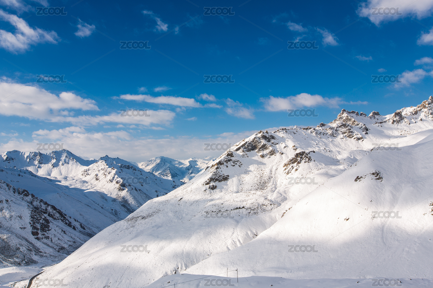 中国新疆独库公路沿途的雪山景观