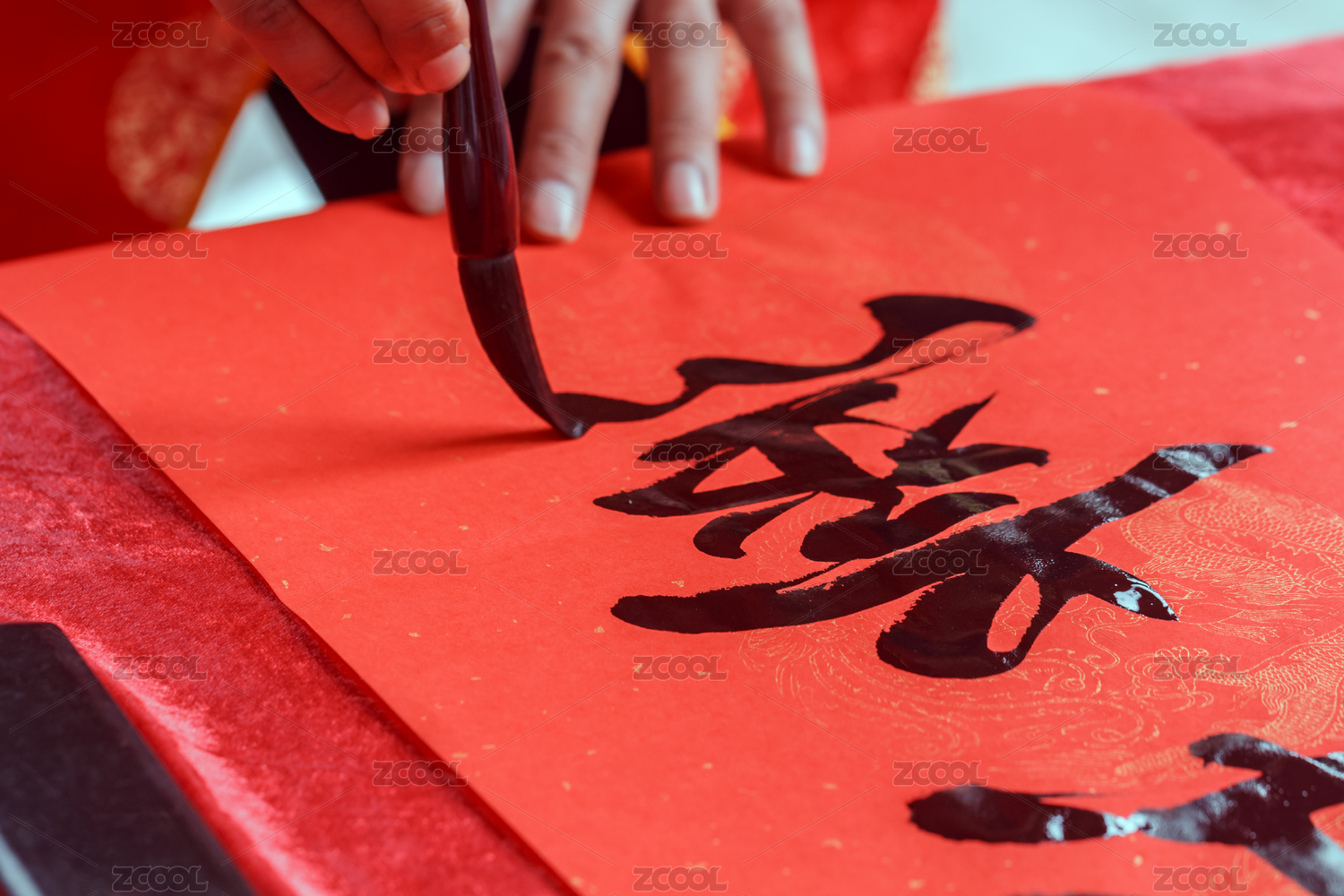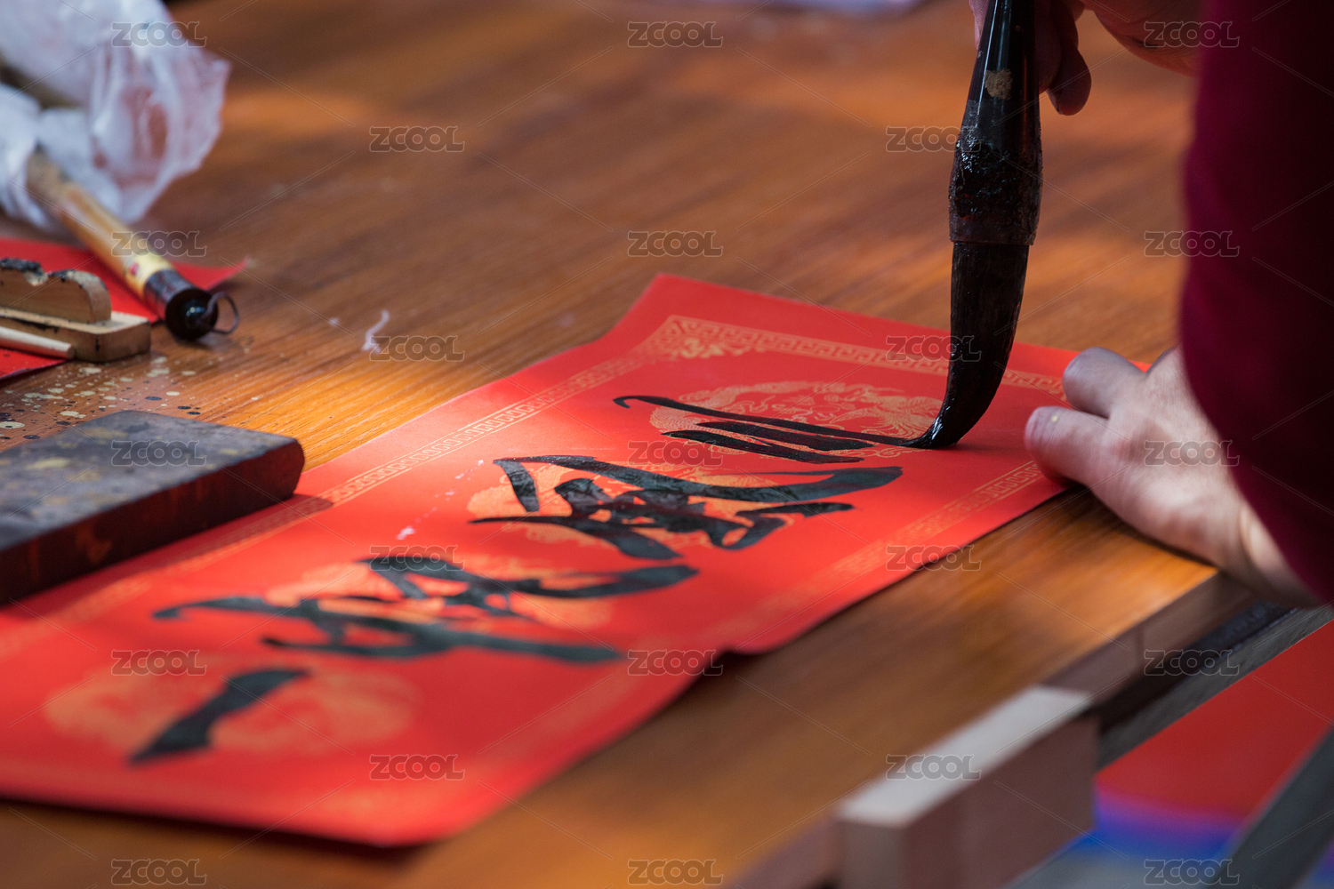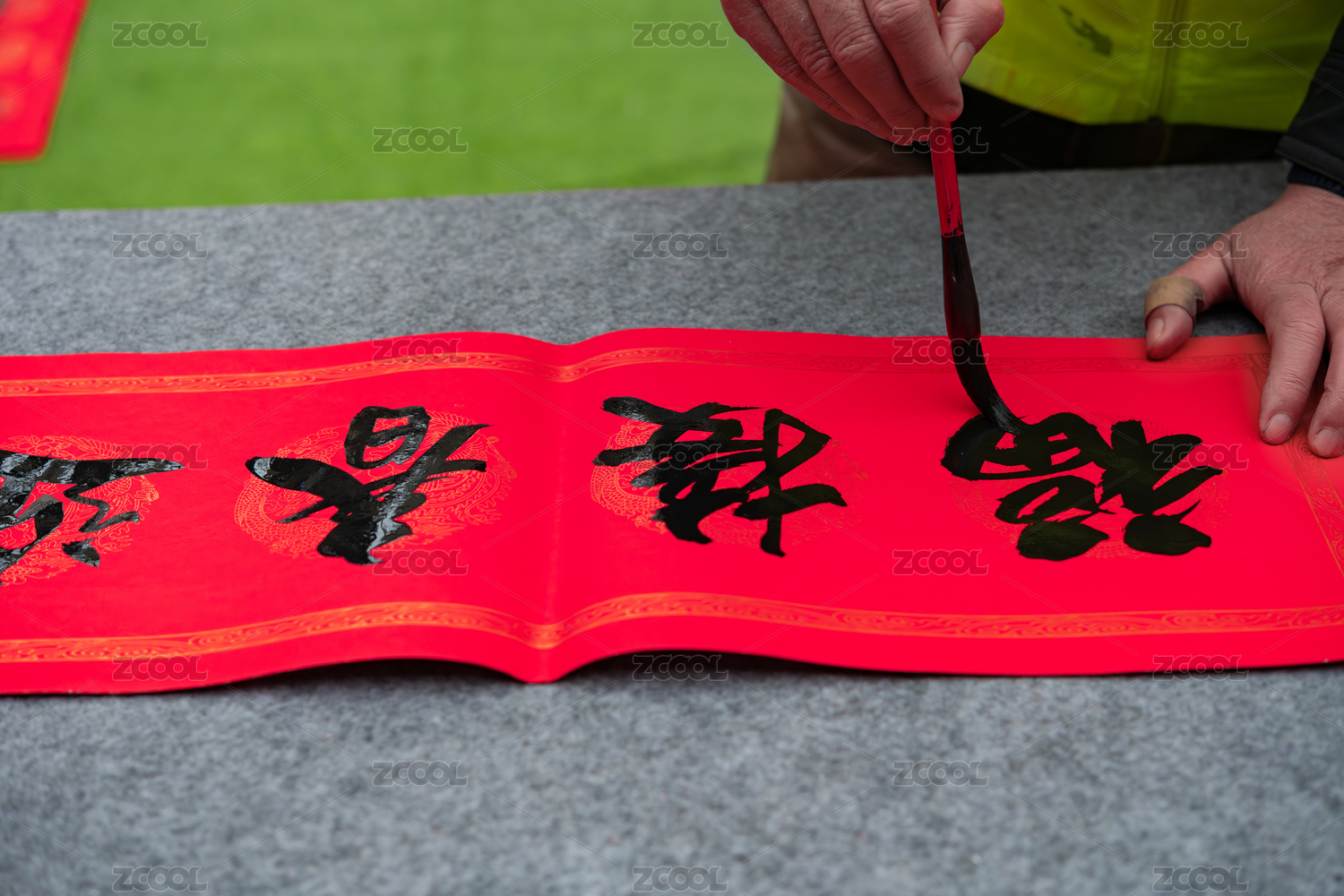 春节,对联,春联,写,毛笔,白天,户外,红纸,对子,传统