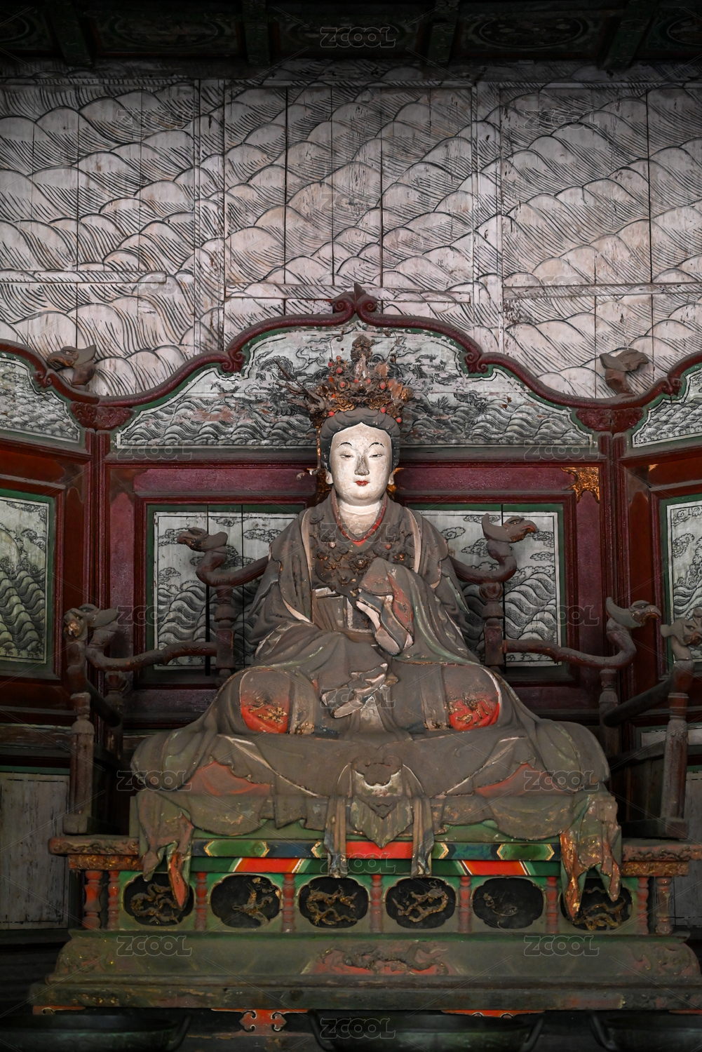 山西晋祠 圣母殿内的圣母邑姜彩绘雕塑