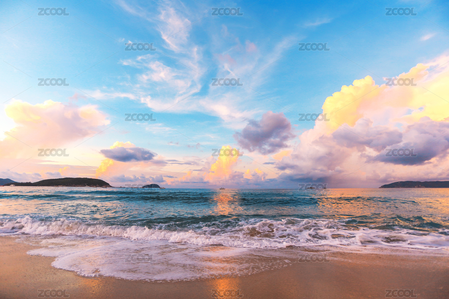 中国海南岛三亚亚龙湾海滩的黎明景观