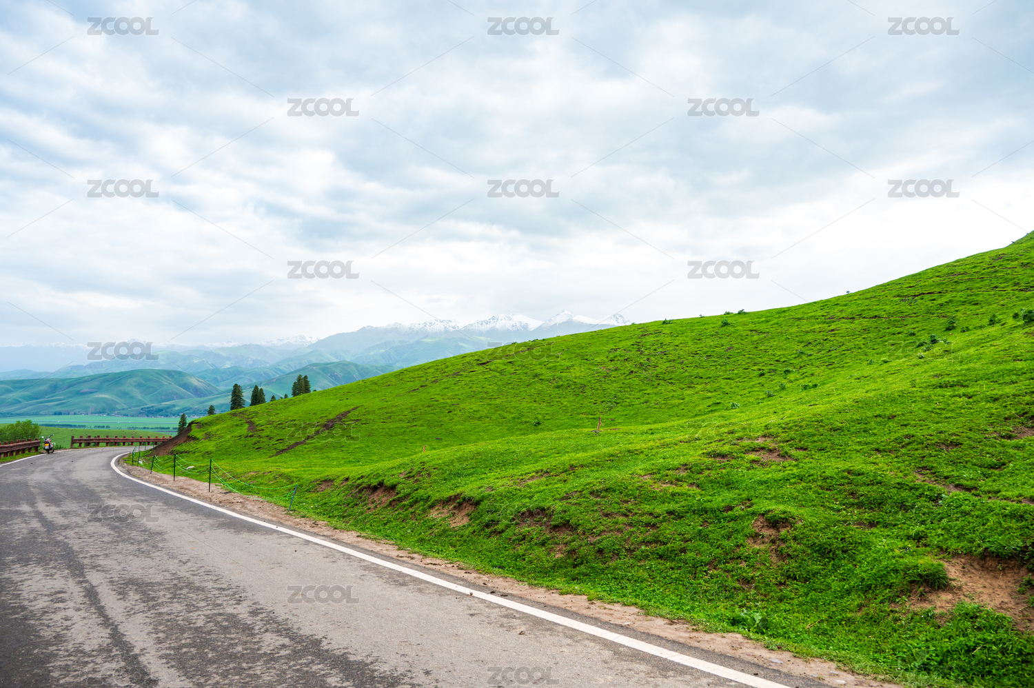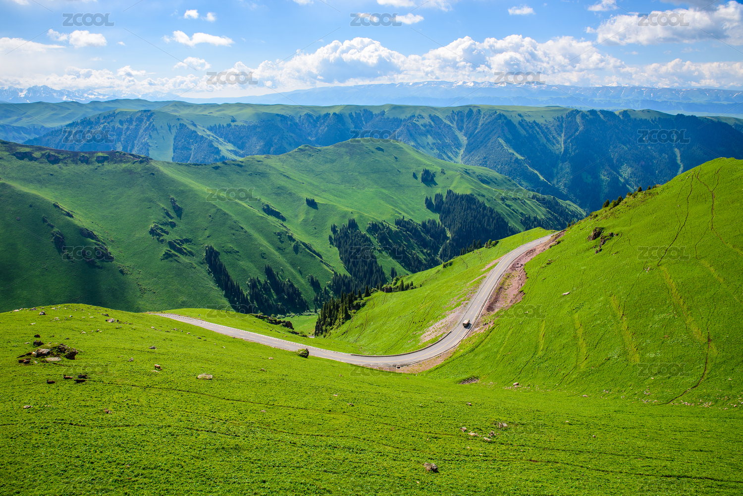 新疆,那拉提空中草原,草场,牧场,公路,山脉,弯曲的,道路,线条美,曲线美