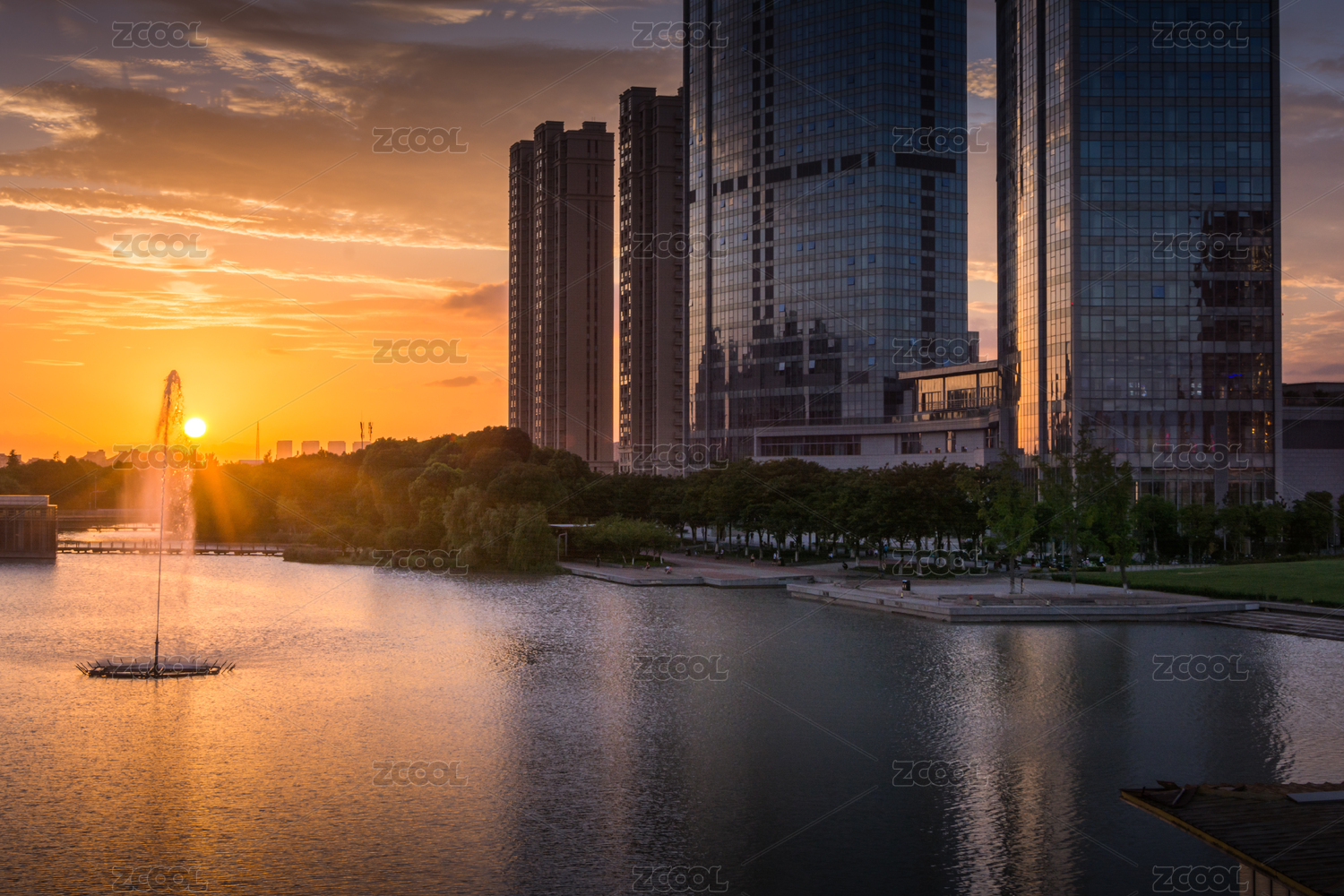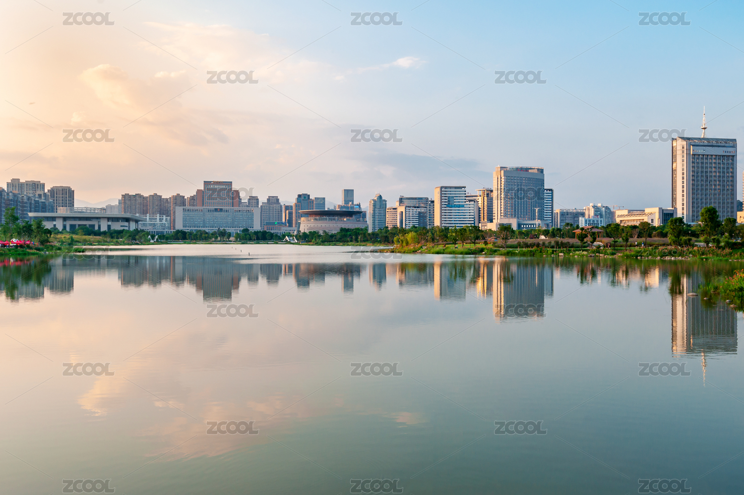 中国福建省龙岩市新罗区龙津湖公园夏天傍晚的风光