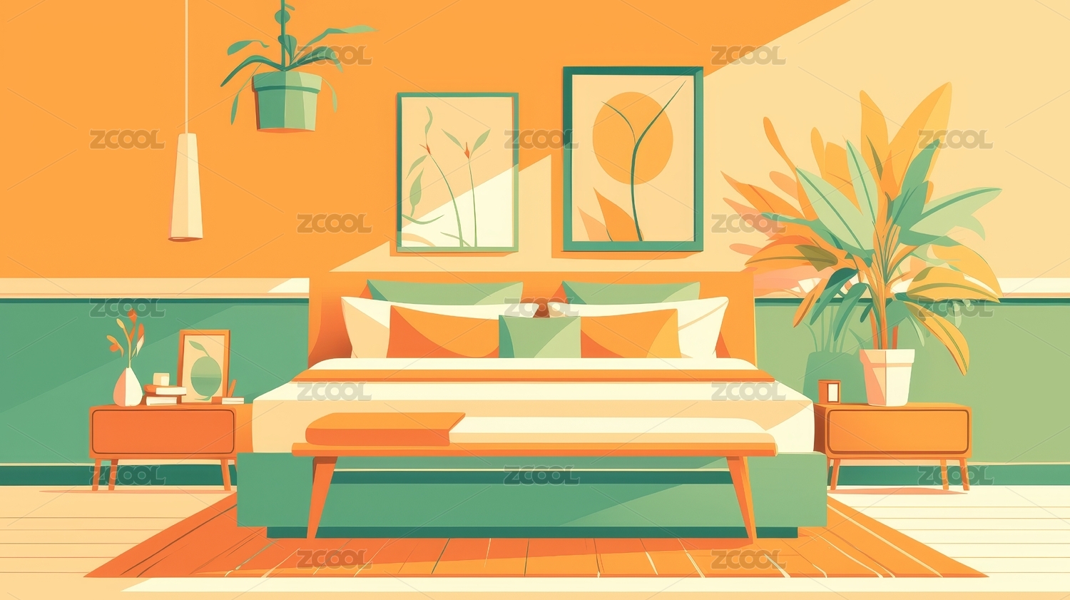 插画,插图,背景,场景,素材,家具,家居,卡通,舒适,睡眠