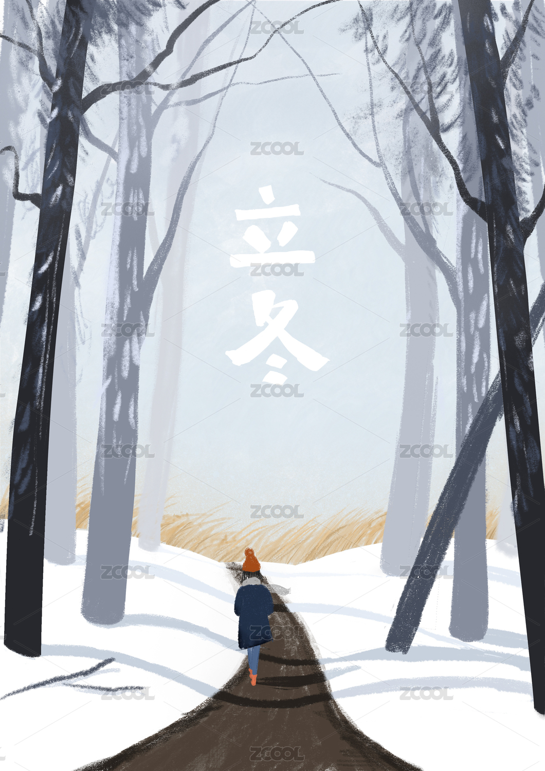 二十四节气之-立冬-滑雪女孩与小狐狸