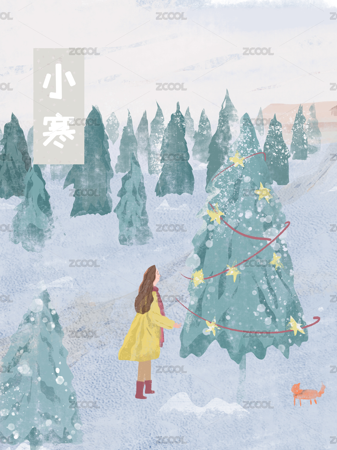 二十四节气,大寒,星星,女孩,雪地,夜晚,森林,下雪,寒冷