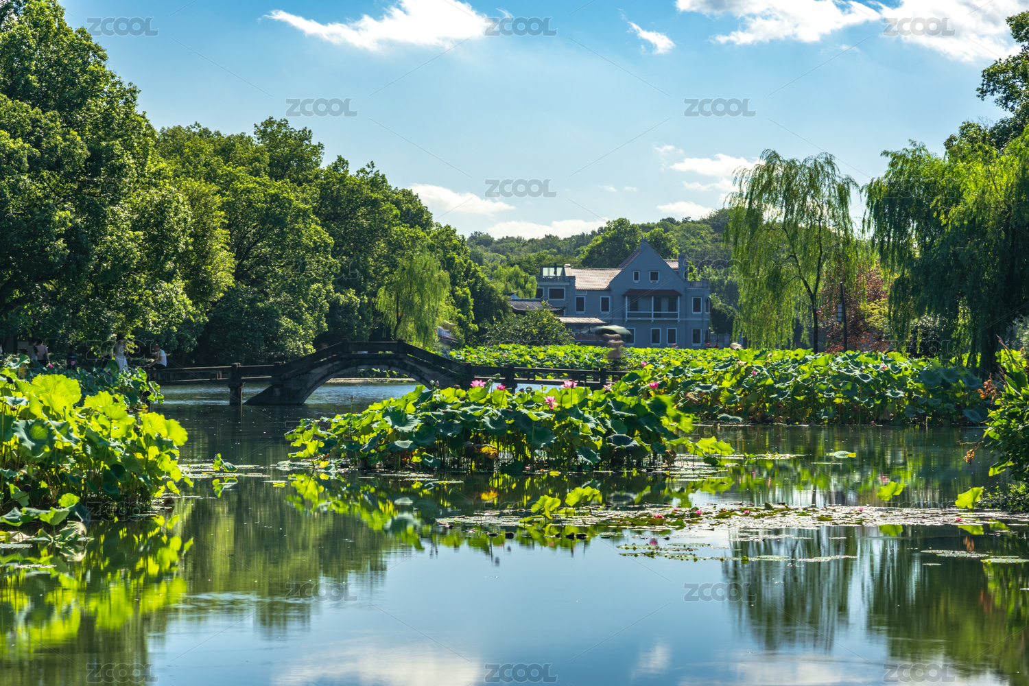 中国浙江杭州西湖景区曲院风荷,亭台楼阁