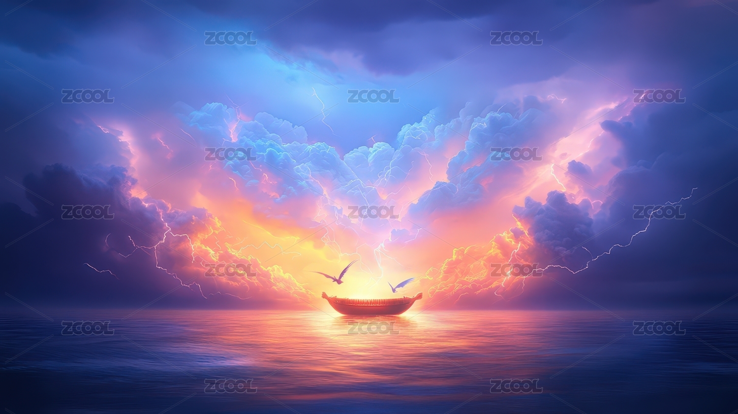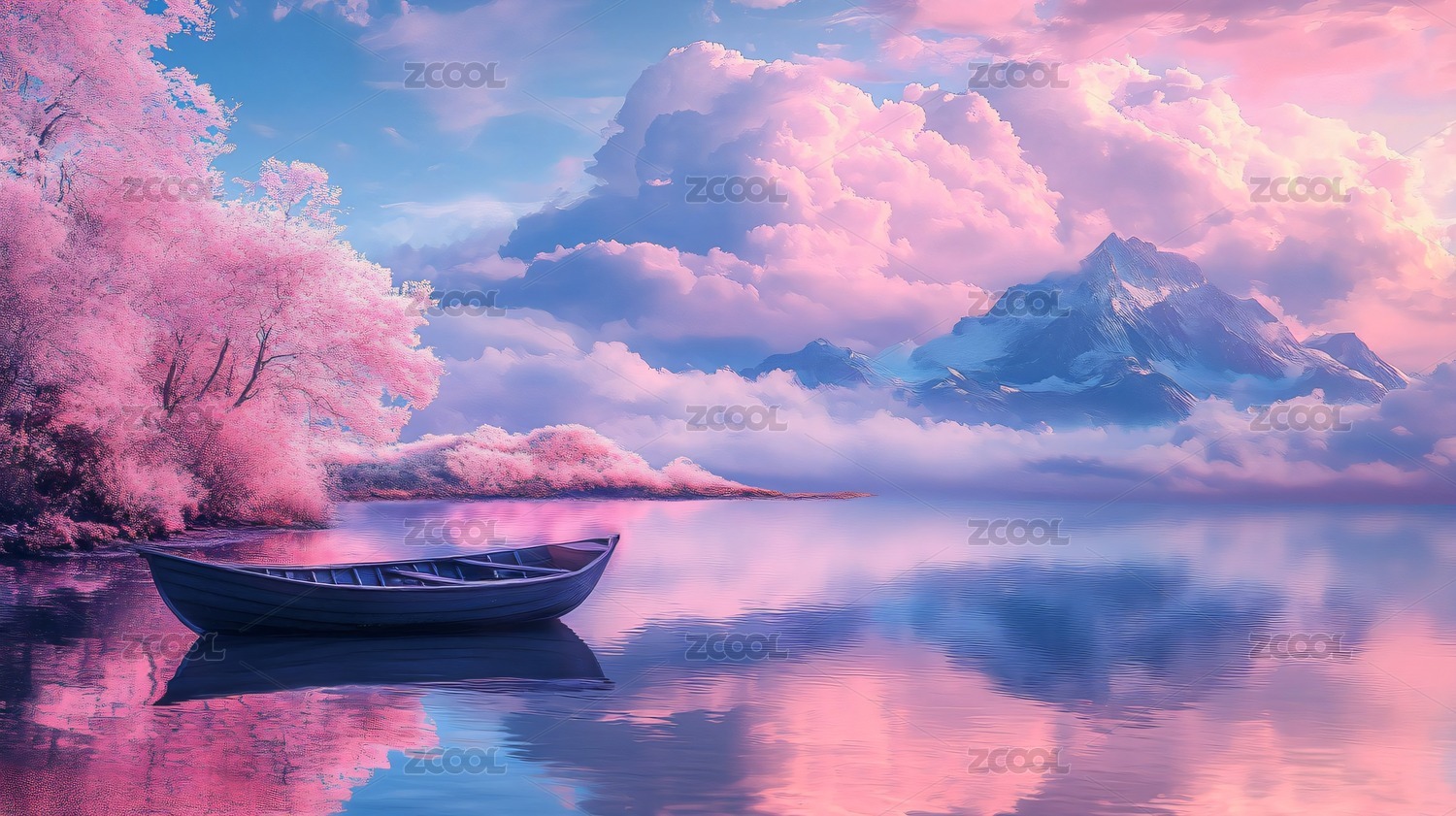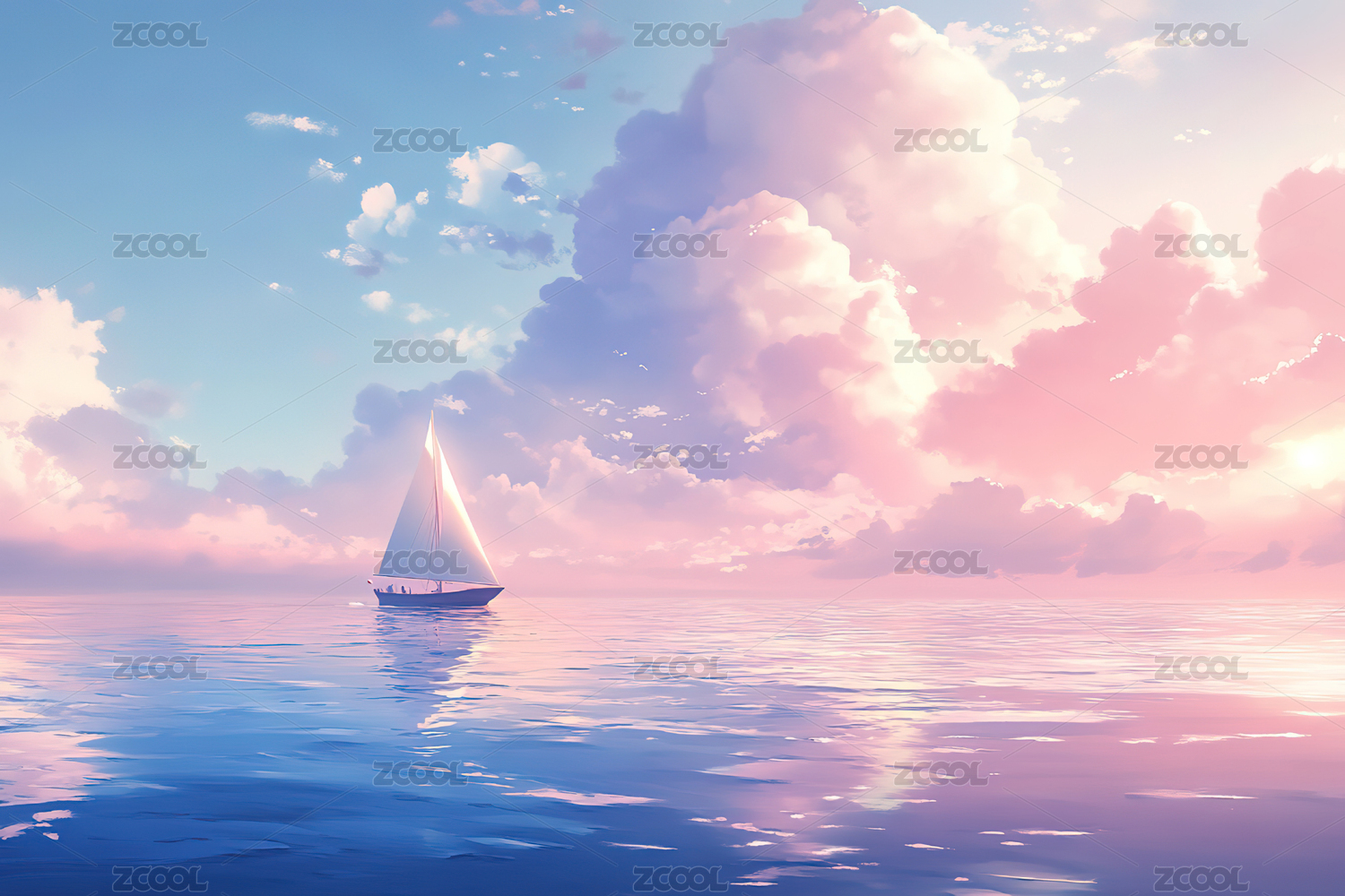 晨光,湖面,船只,静谧,天空,自然,水面,反射,柔和,蓝色