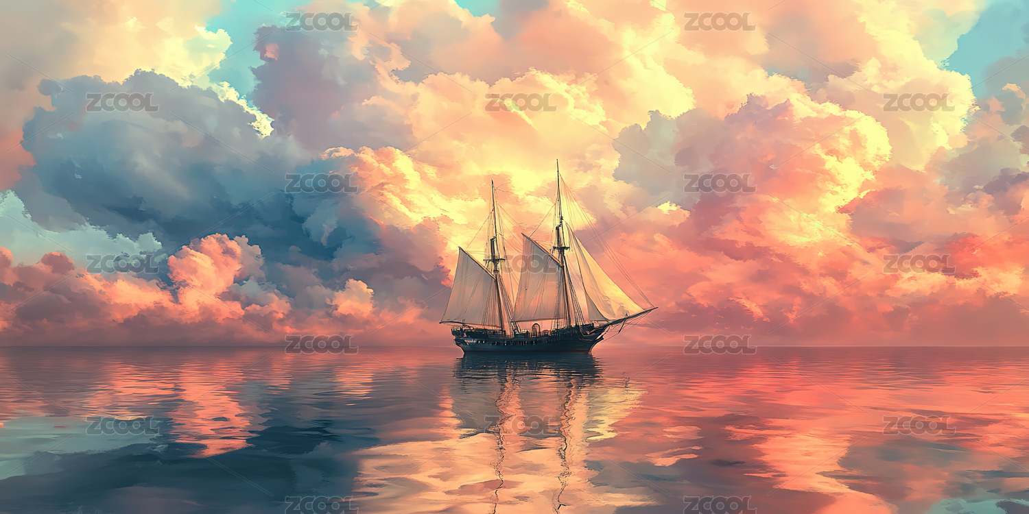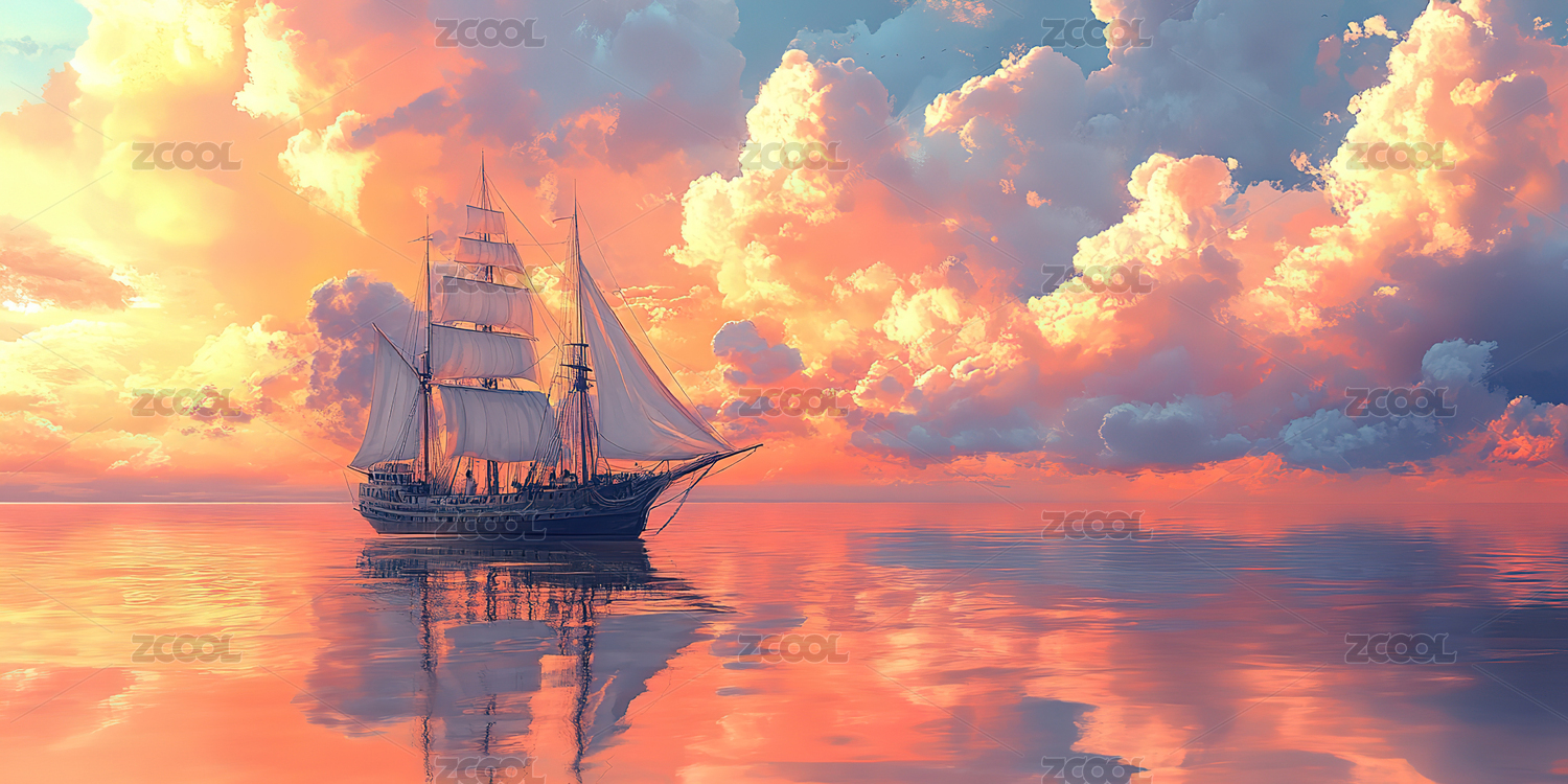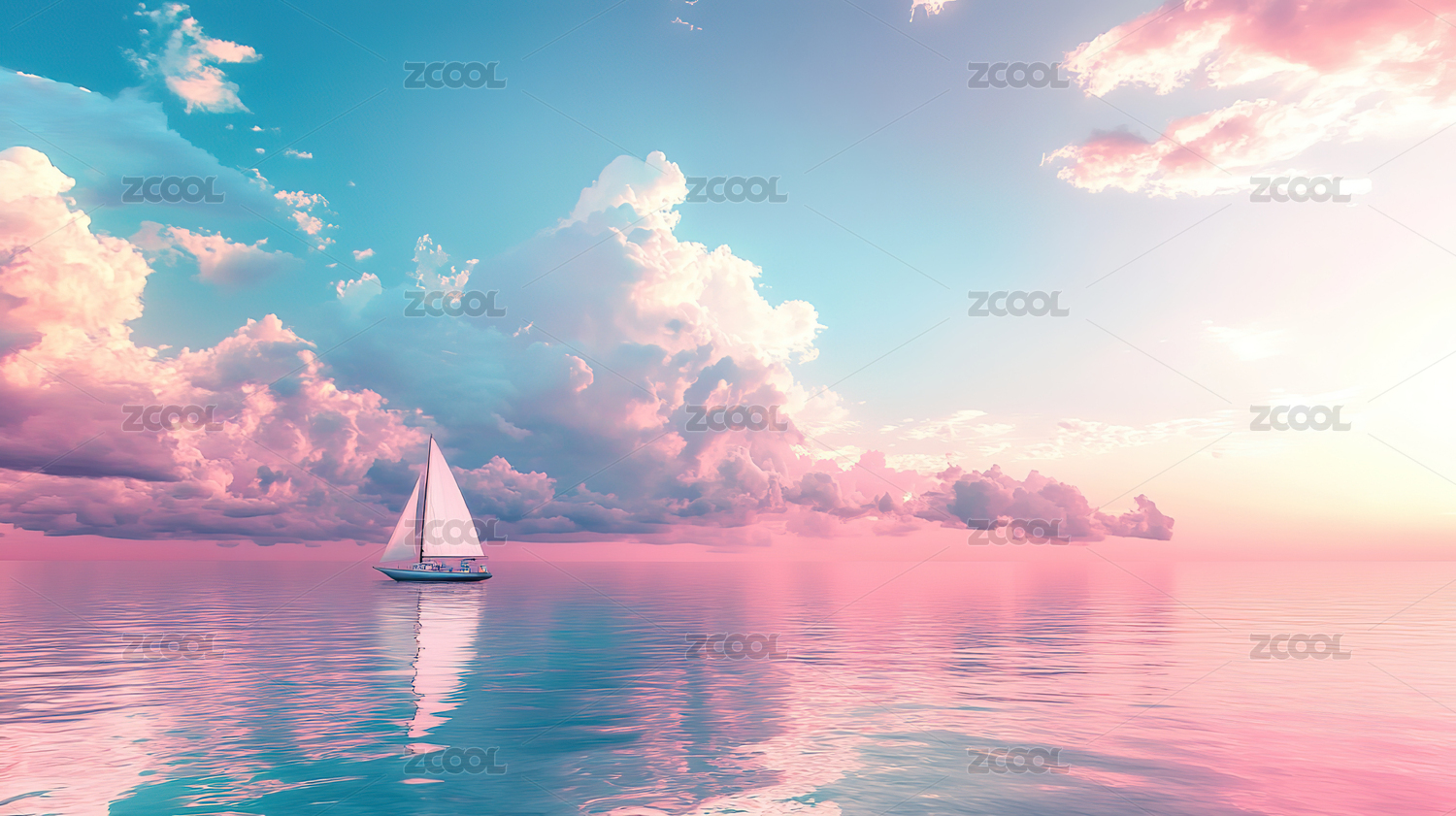 晨光,湖面,船只,静谧,天空,自然,水面,反射,柔和,蓝色