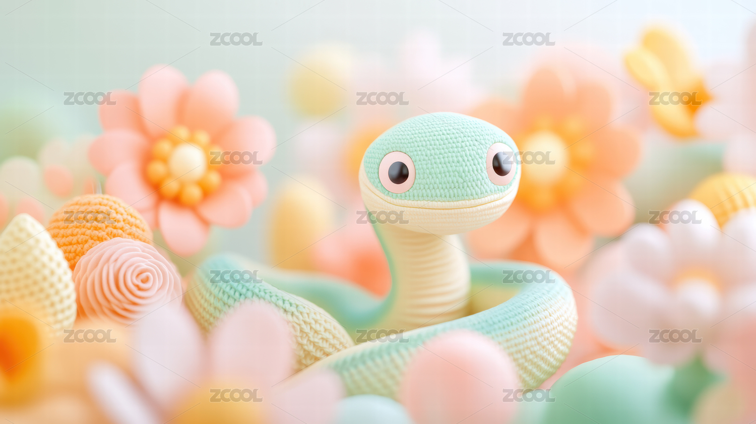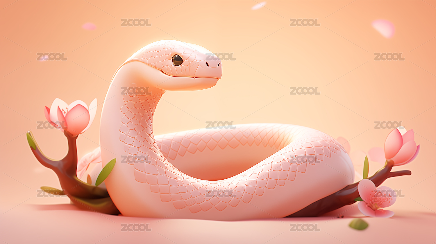 卡通蛇可爱3d立体建模场景桃花植物