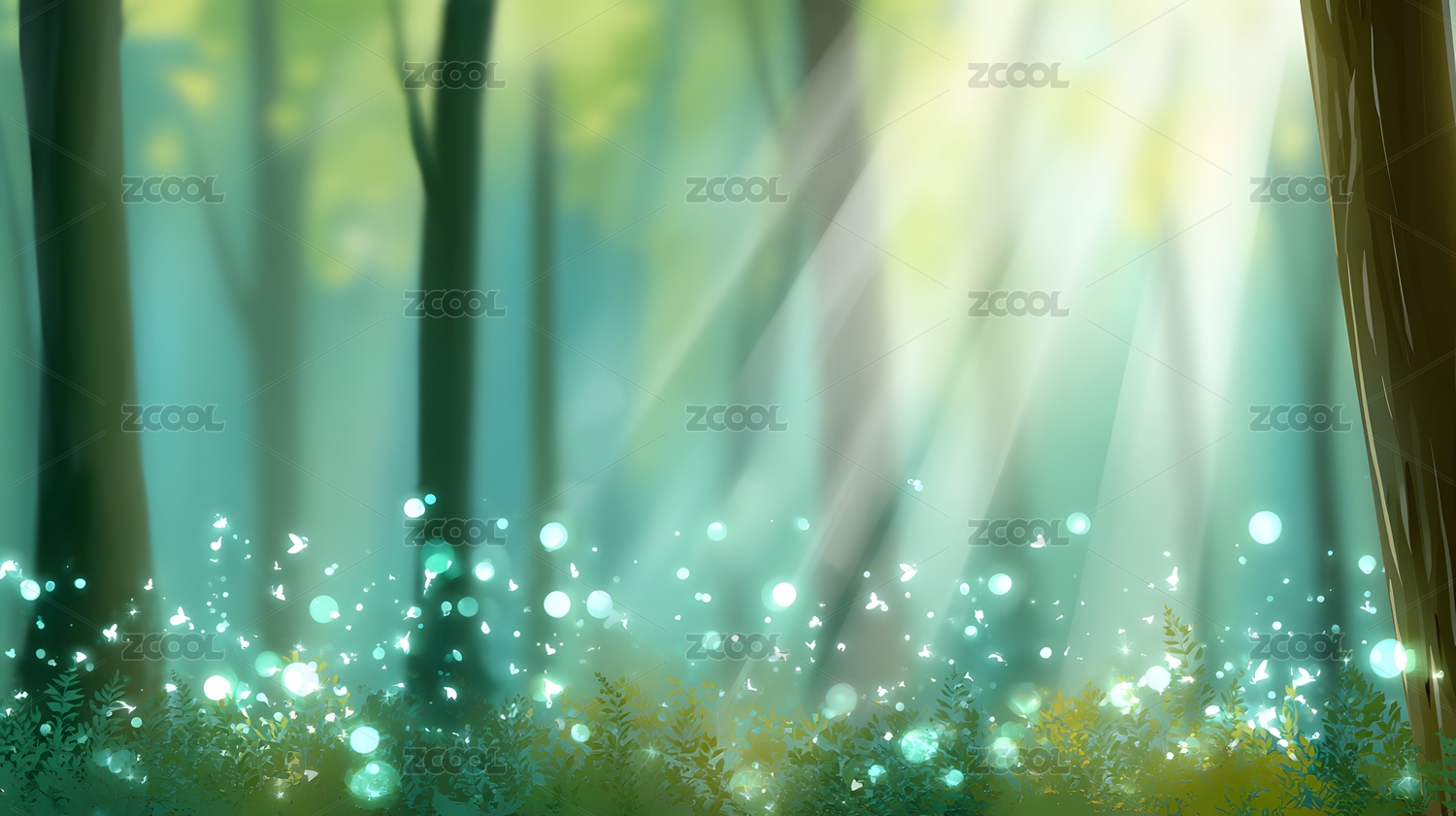 树林里的极光卡通背景