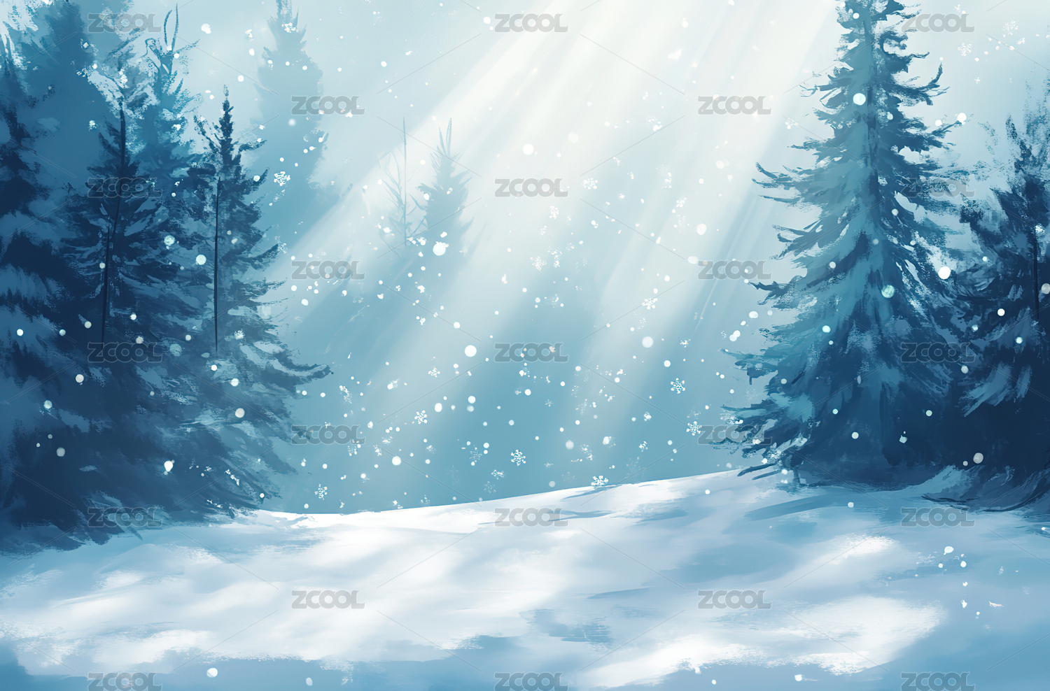 冬日森林中的飘雪