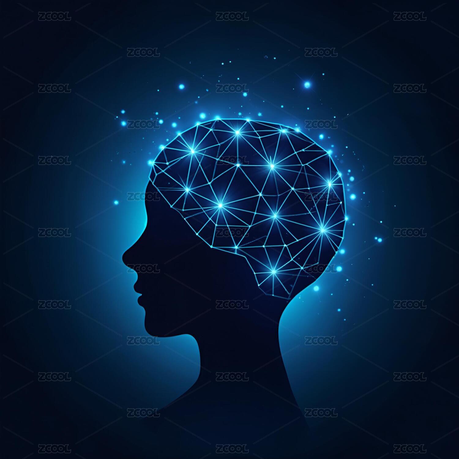 点线构成的人脑发光图形