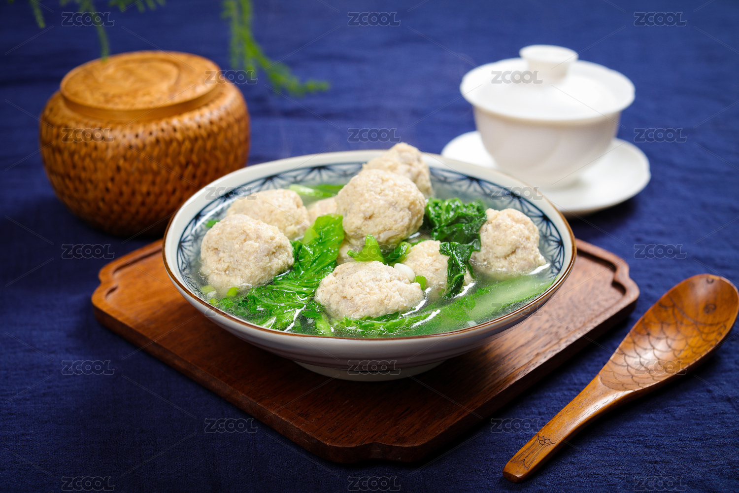 快餐外卖菜肴美食青菜猪肉豆腐丸子汤