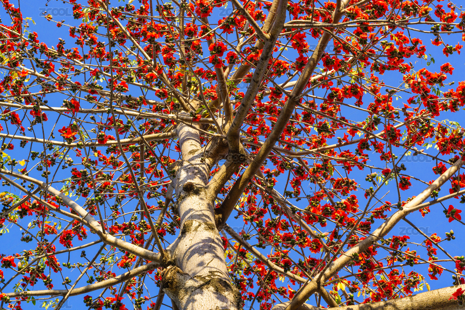 花朵,花树,春天,四月,木棉树,木棉花,天空,南方,深圳,蓝色