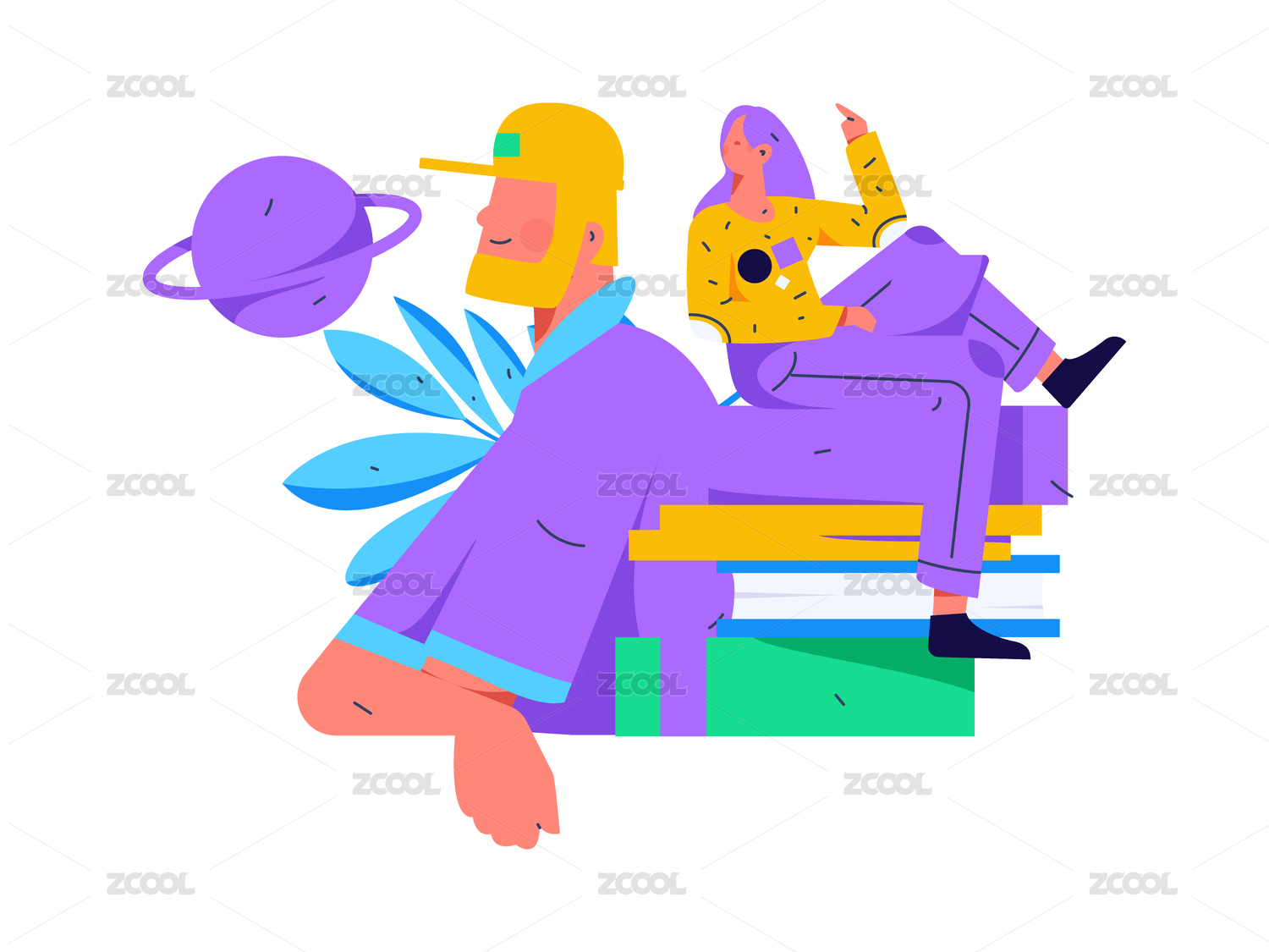 世界读书日阅读人物扁平矢量概念运营手绘插