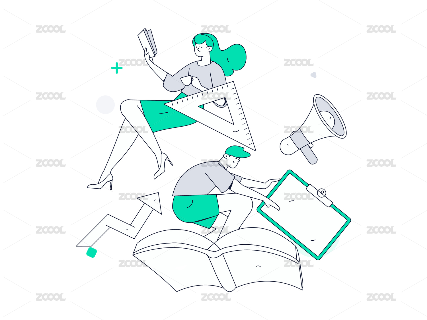 商务人物运营工作场景扁平矢量插画