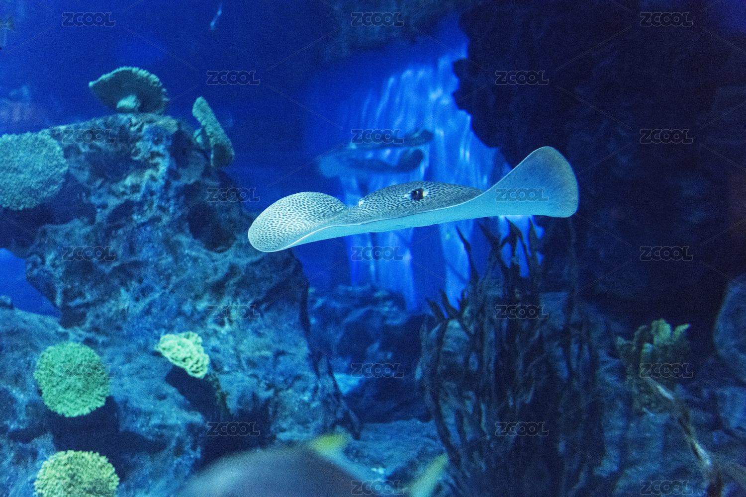 在深蓝色的大海中悠闲自得游动的鳐鱼
