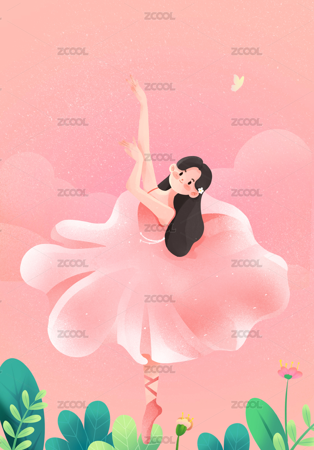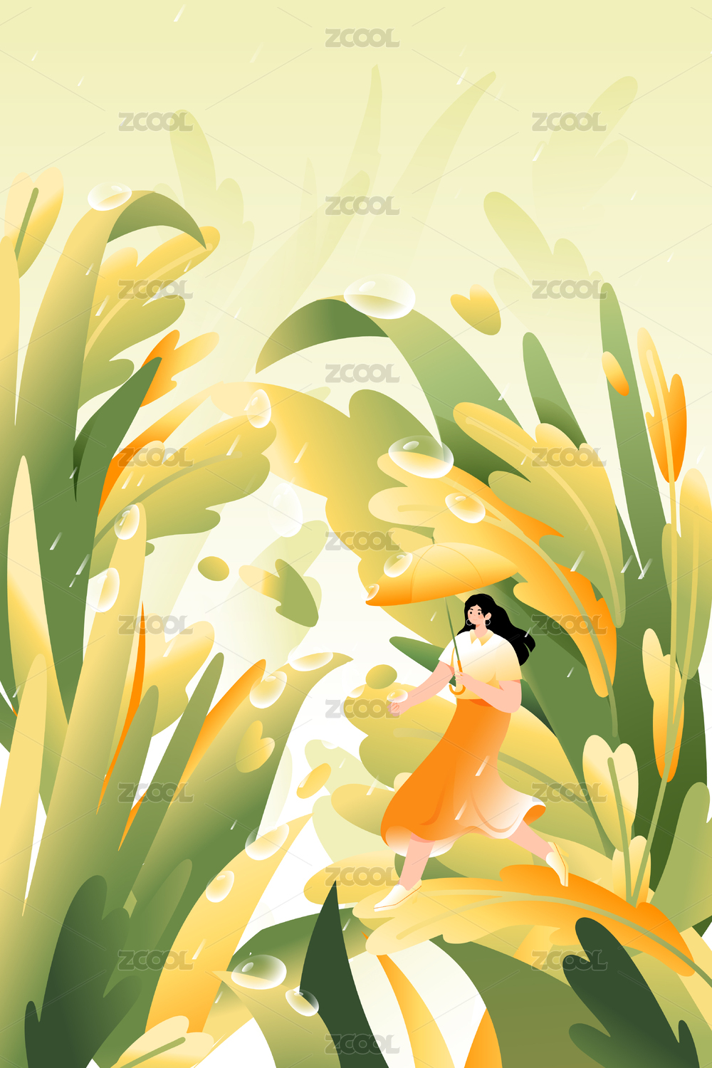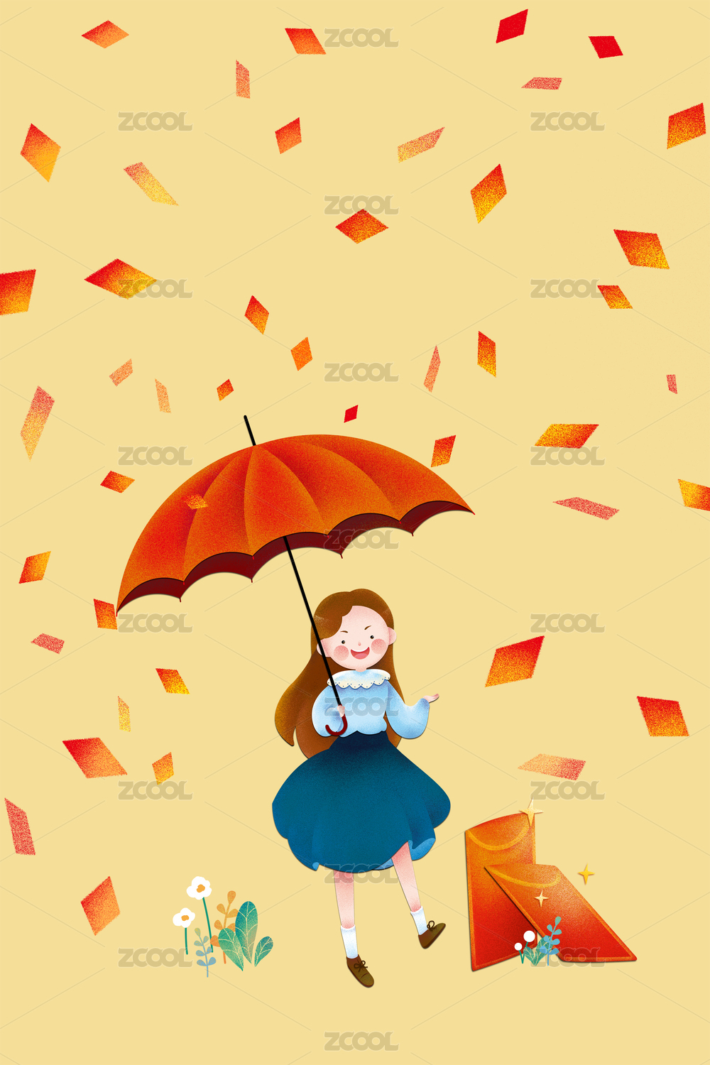 打伞的女孩红包雨温馨可爱简洁理财恭喜发财钱币开屏背景插画