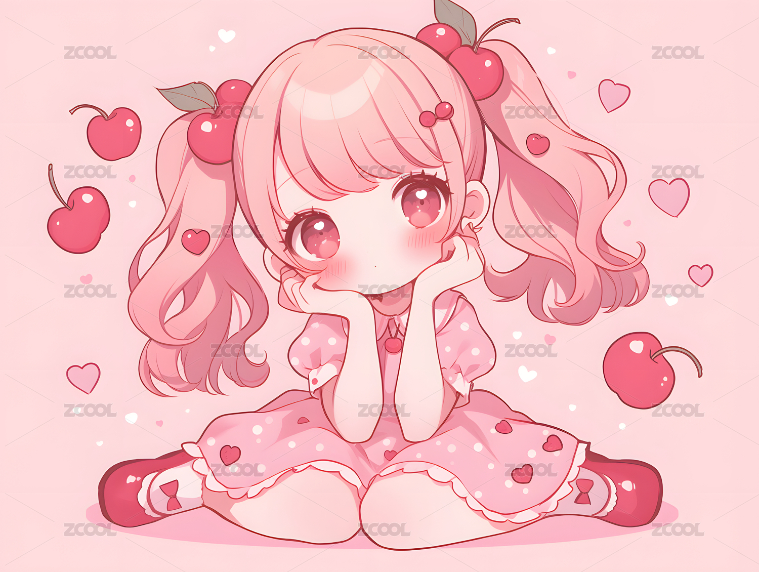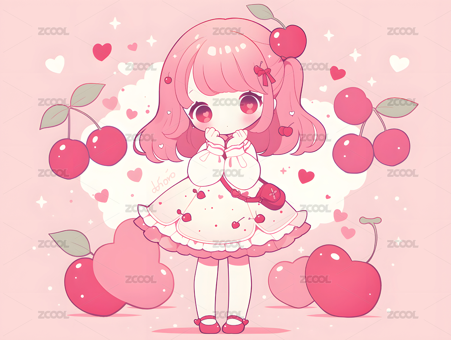 AIGCFG,卡通,可爱,插画,水果,q版,简洁,高清,女孩