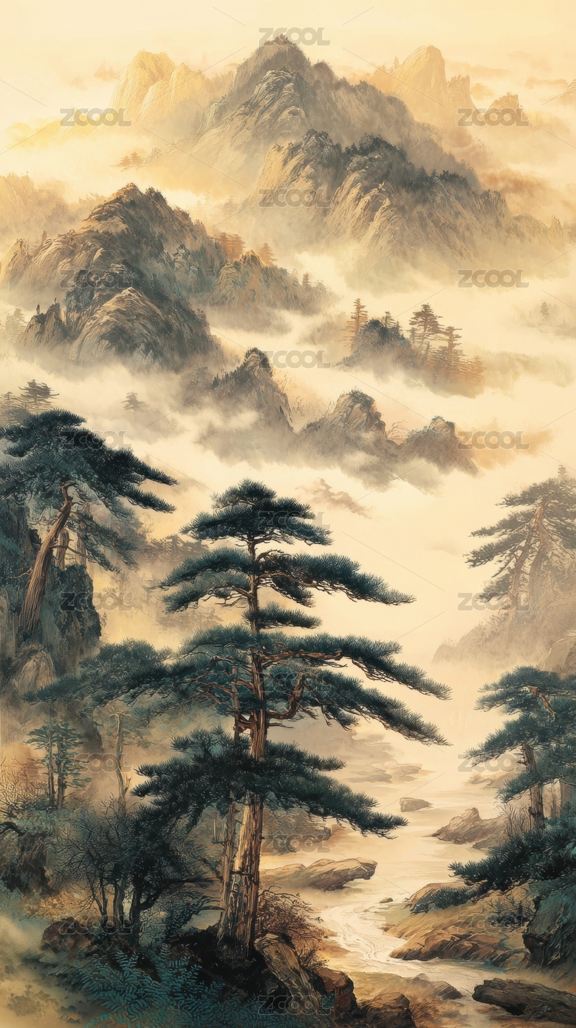 渐变,概念,抽象,中式,山水,金色,复古,传统,国风,中国风