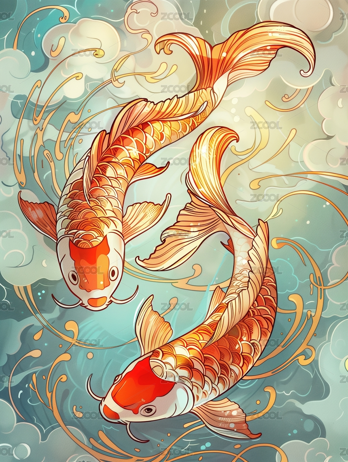 鱼,锦鲤,鲤鱼,国潮,喜庆,钓鱼,水