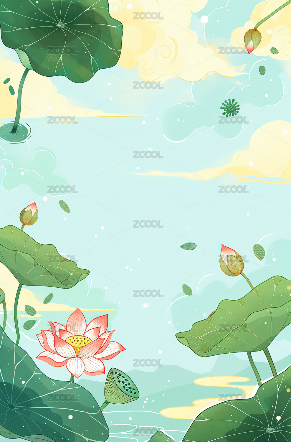 夏天荷花荷叶背景插画海报