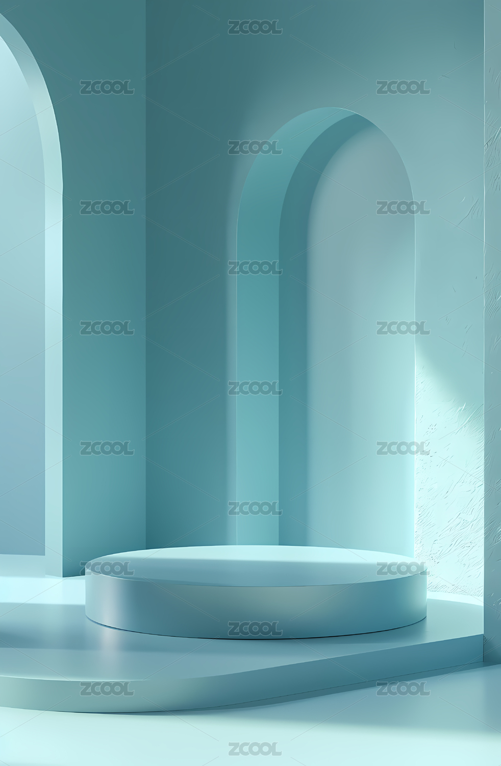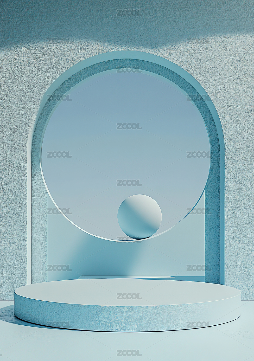 3D浅蓝色小清新拱门电商产品展台