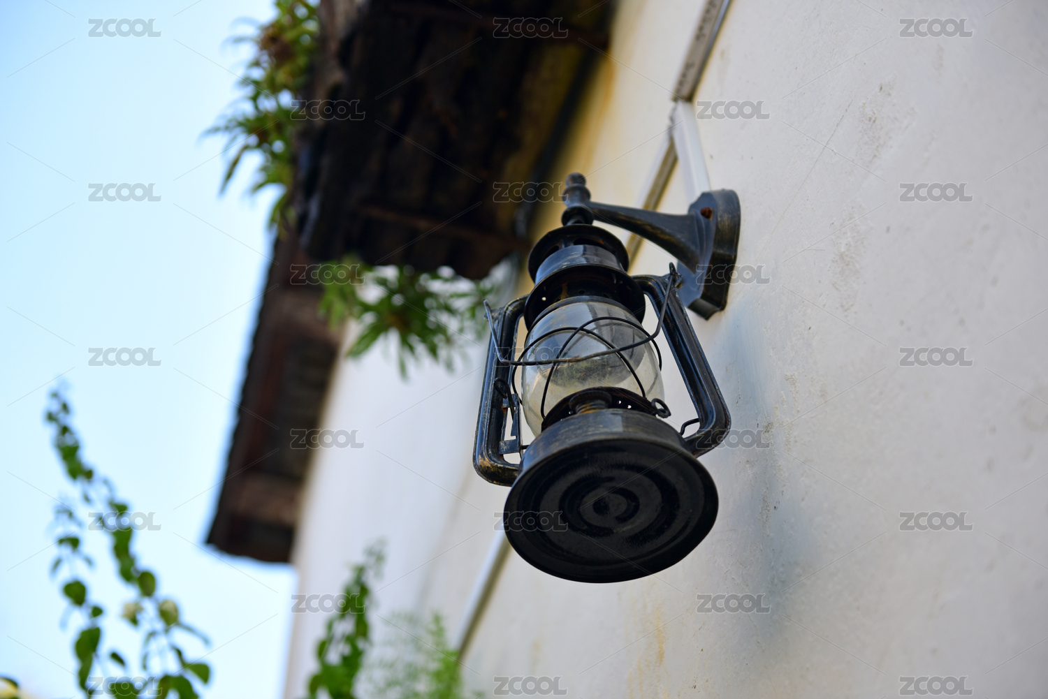 阳光下一盏挂在老砖墙上的旧马灯