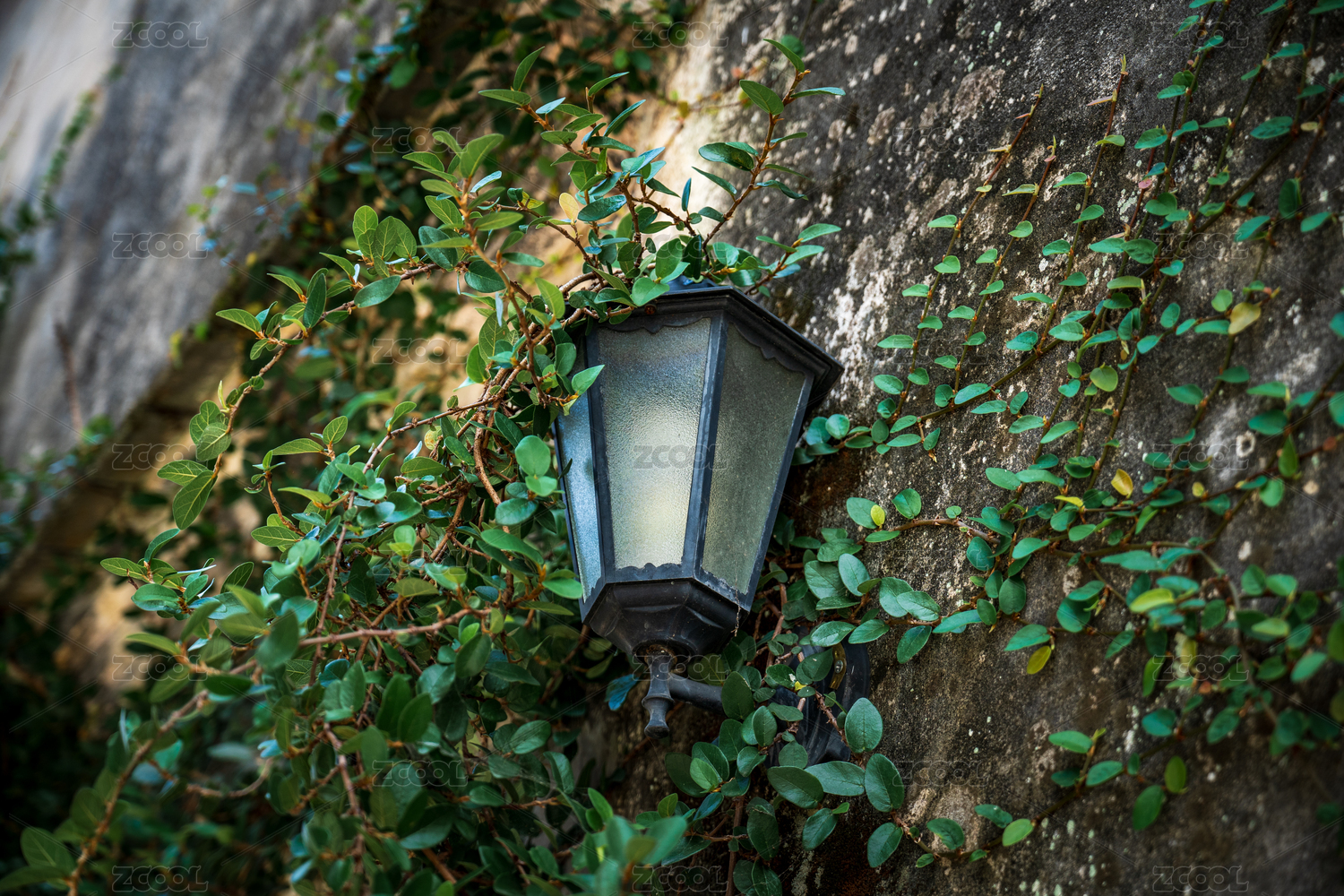 古老墙壁上的路灯