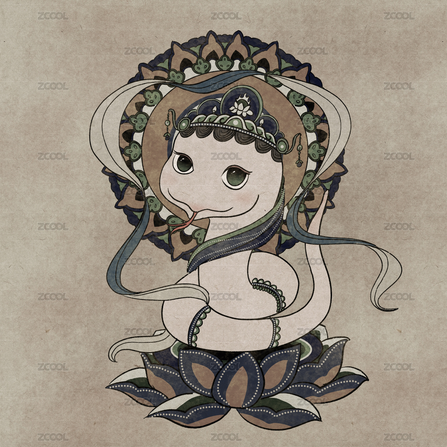敦煌风十二生肖之蛇
