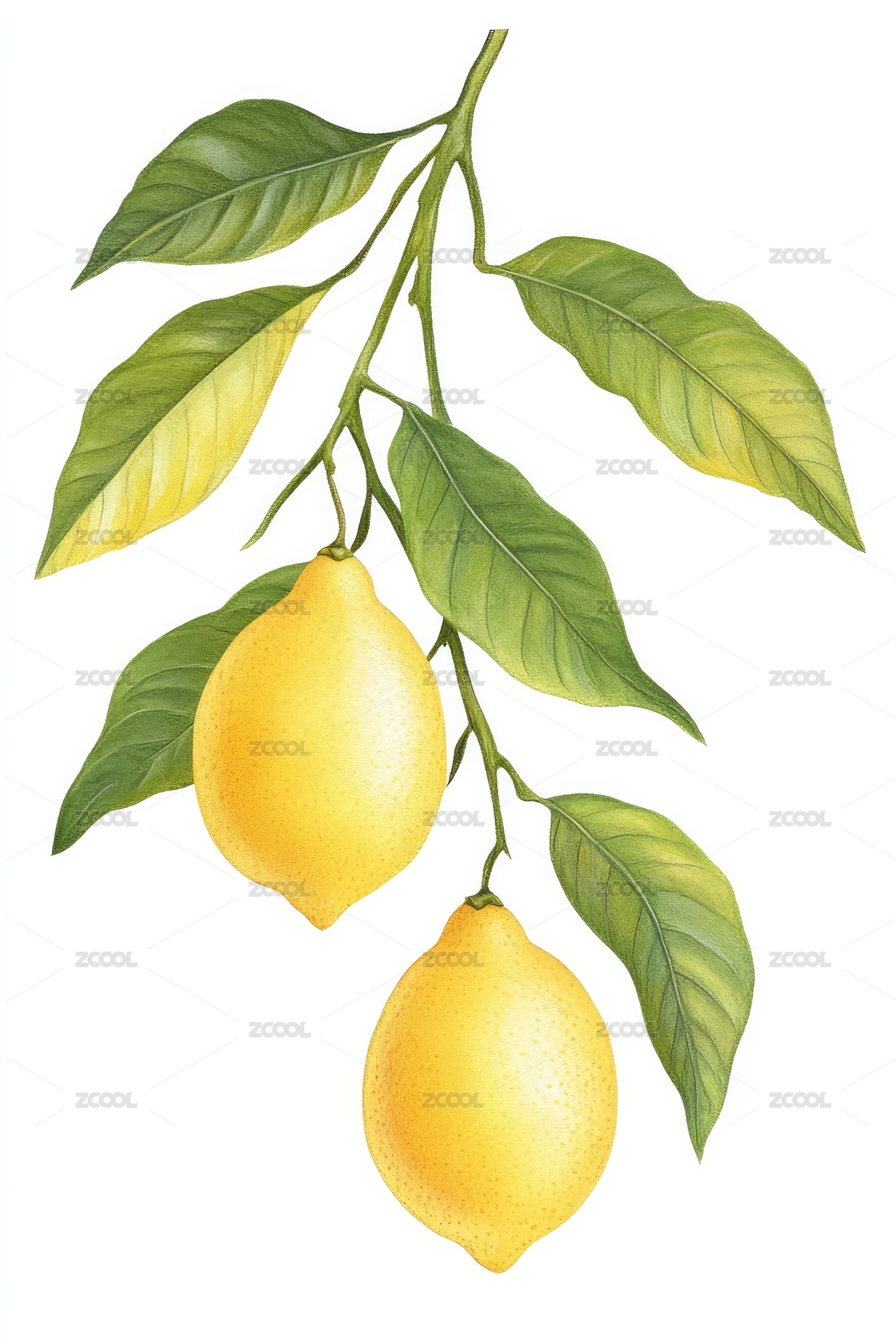 手绘柠檬树枝,清新自然
