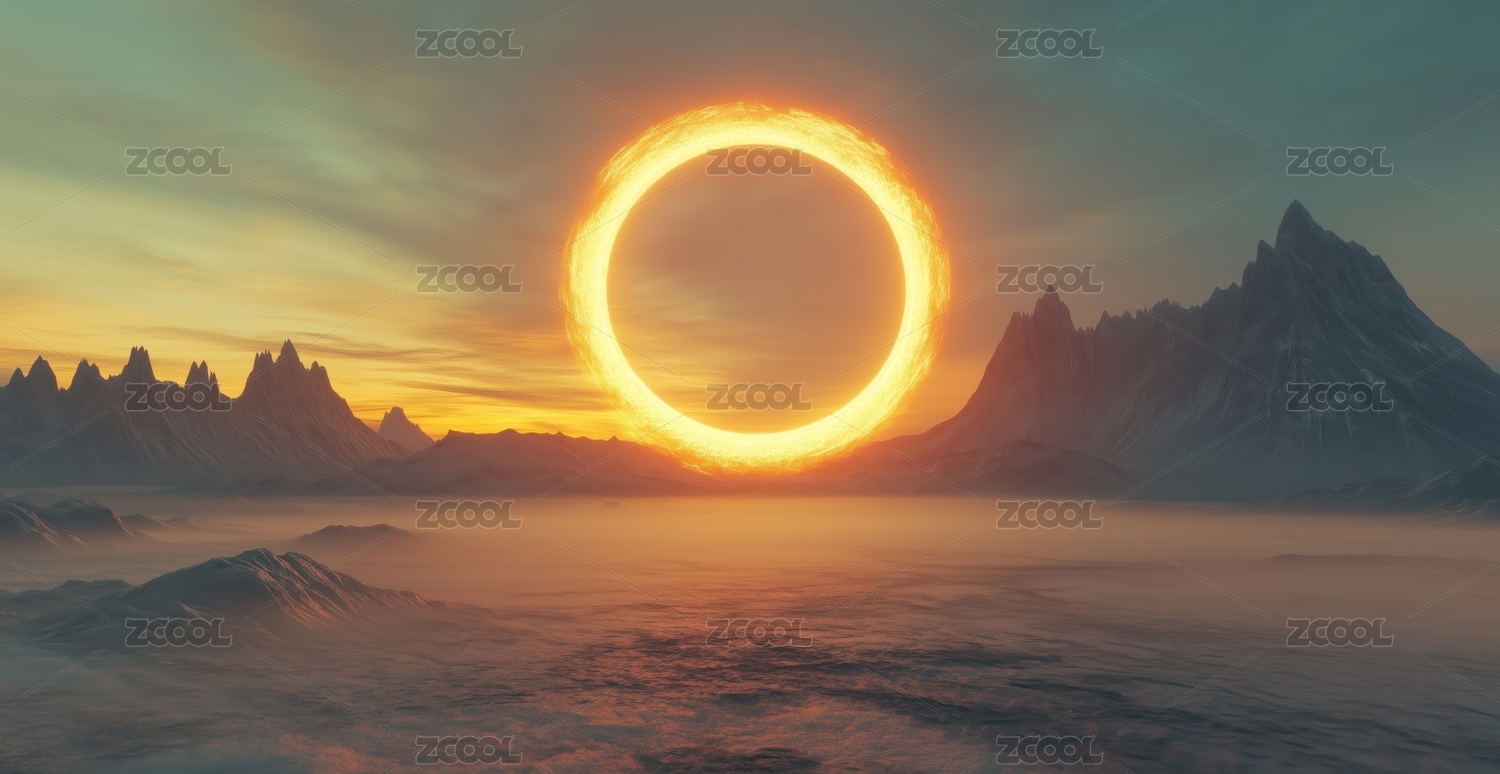 沙漠戈壁滩地形与发光科技平台产品展台背景