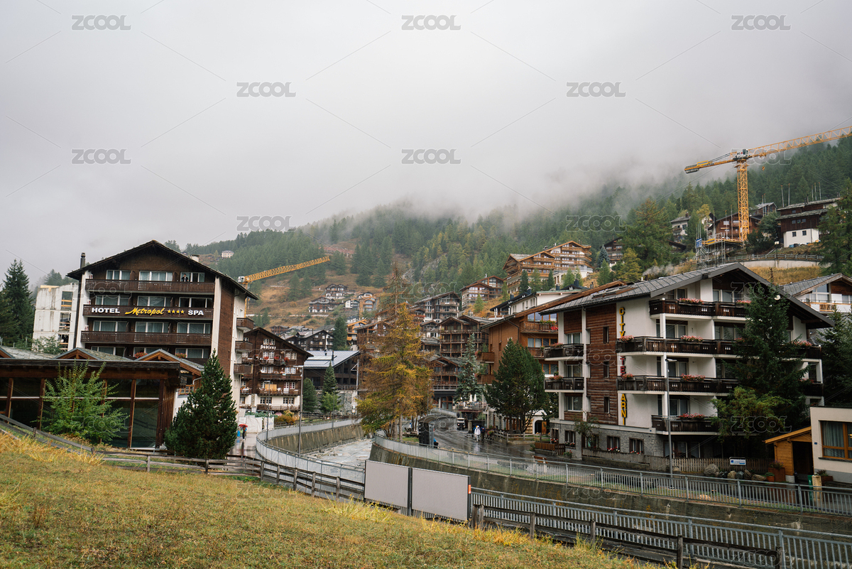 瑞士冰川之城采尔马特坐落在山谷云雾之中