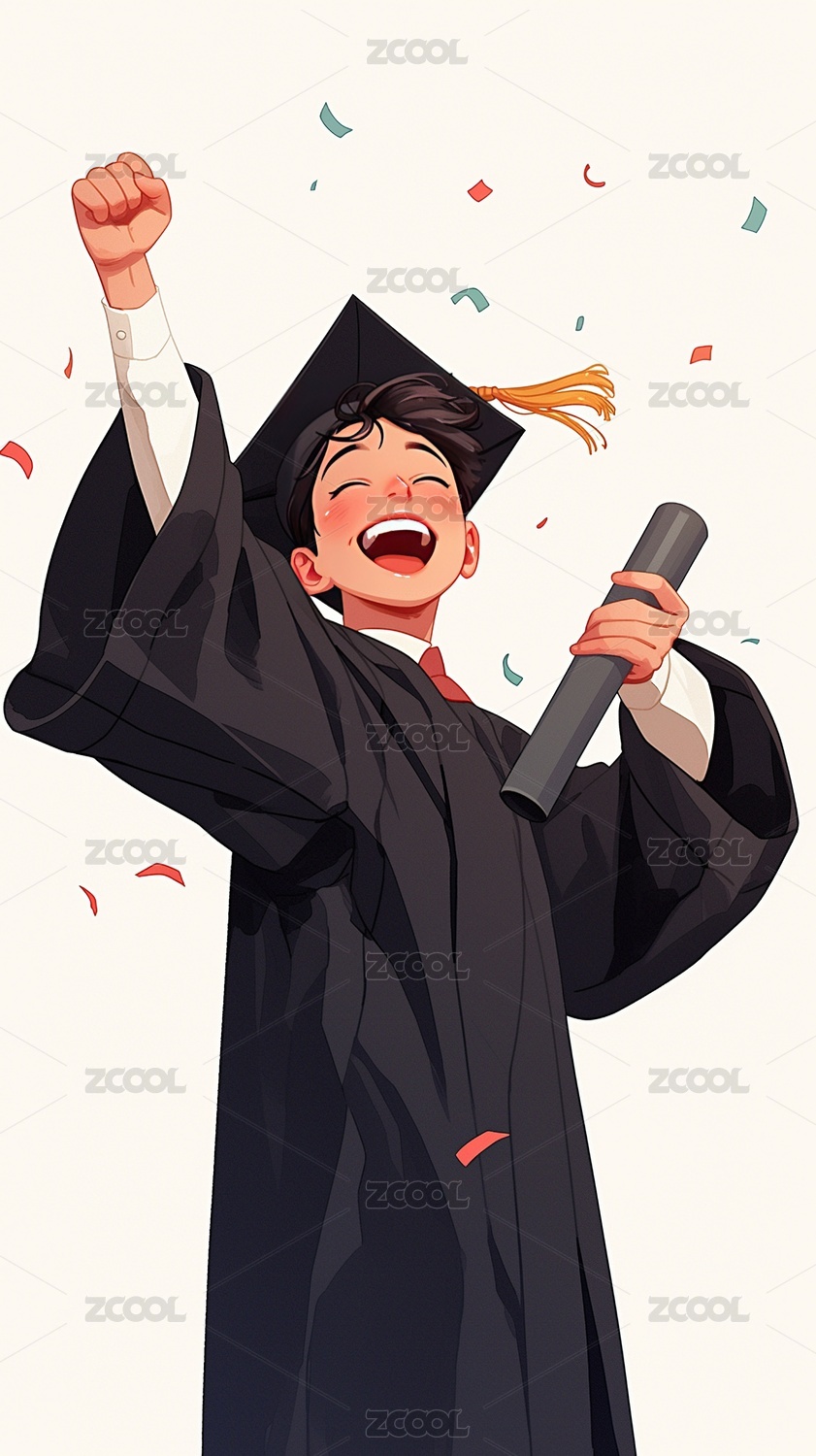 学生,毕业,学士服,女生,男生,人物,插画,花卉