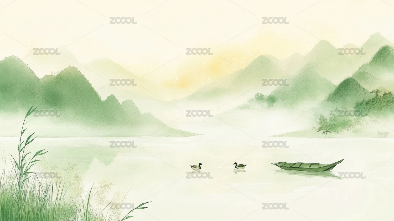 中国风,山水画,水墨画,新中式,水彩画,插画,背景,风景画,意境,山水