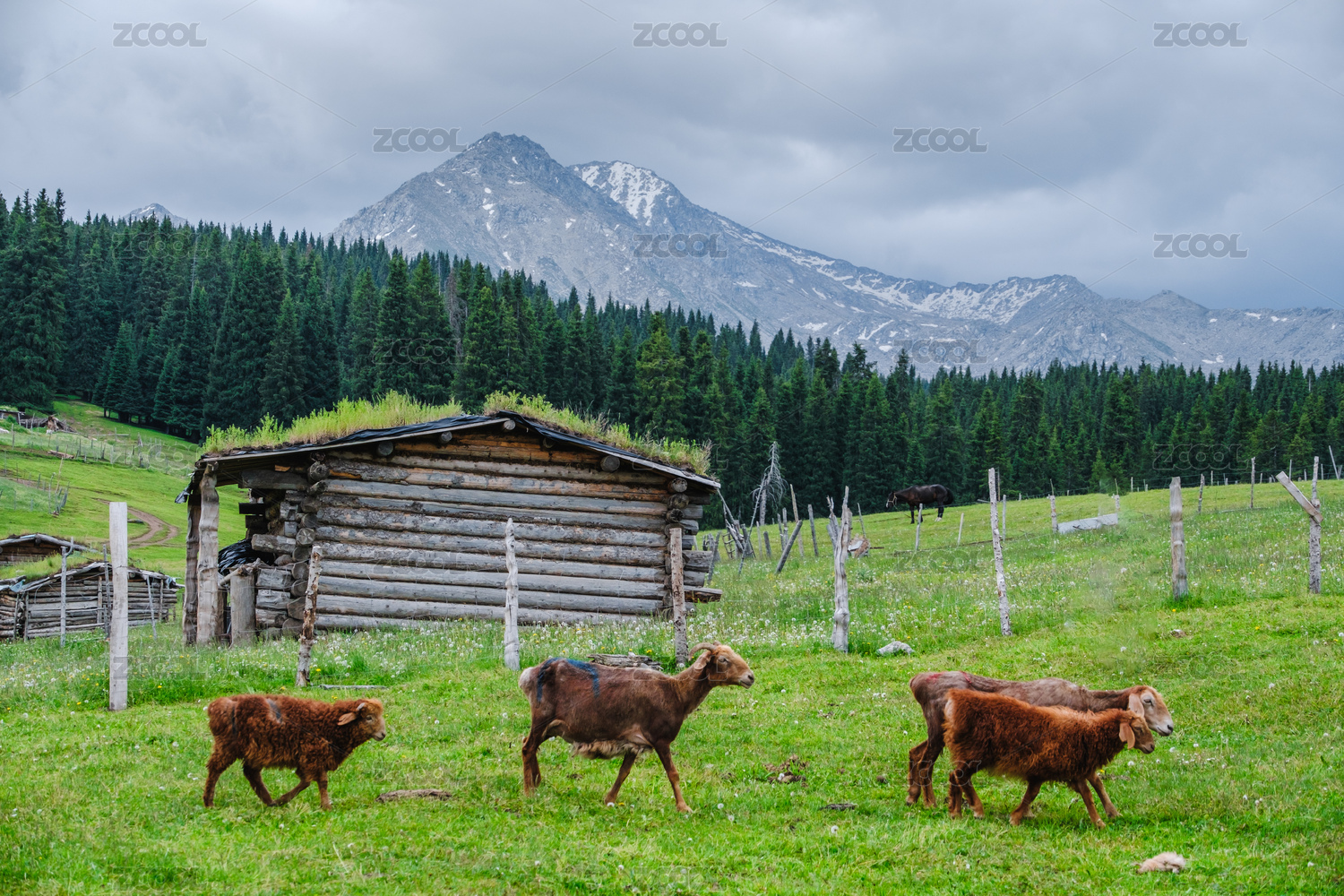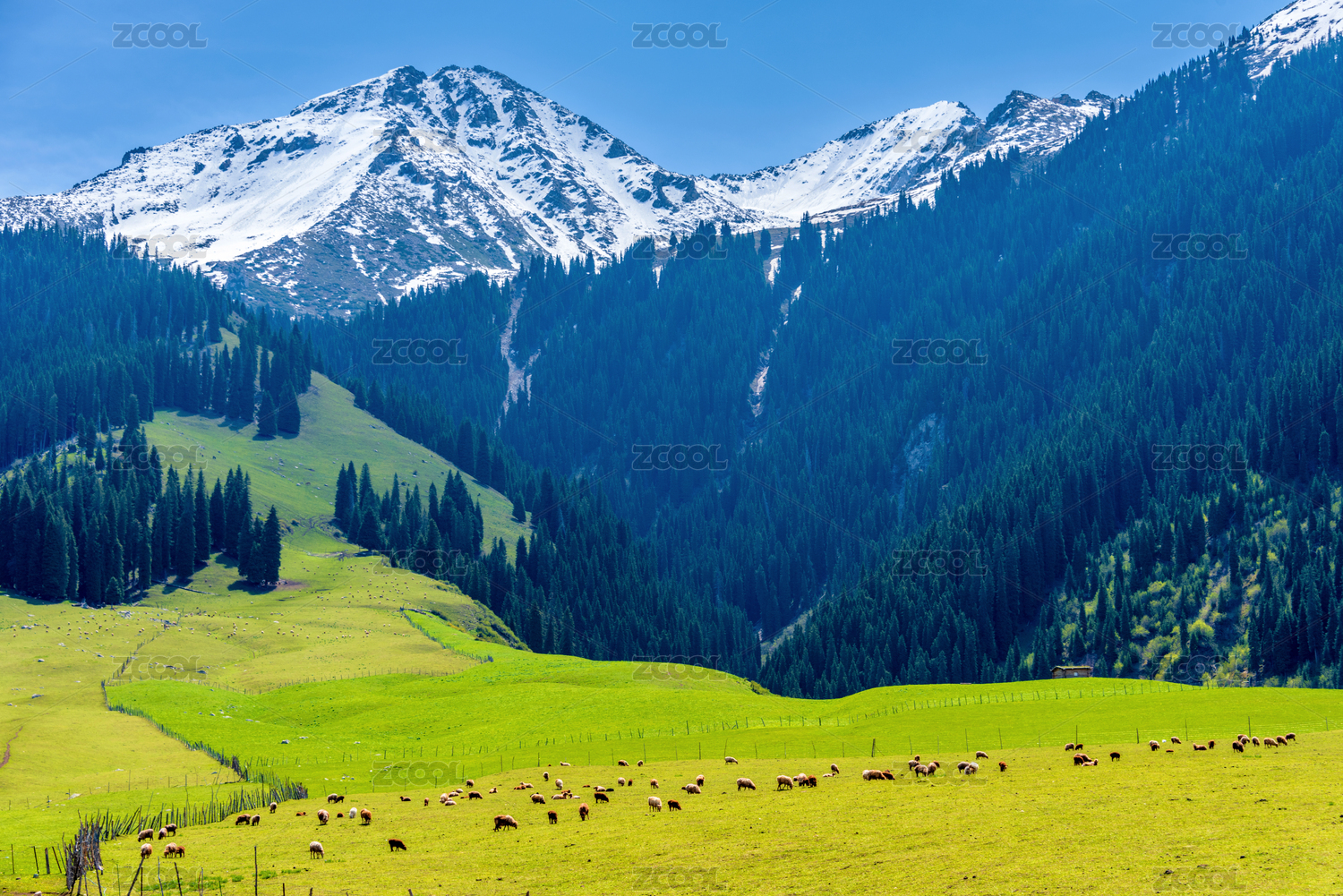 中国新疆伊犁琼库什台村草原高山牧场绵羊