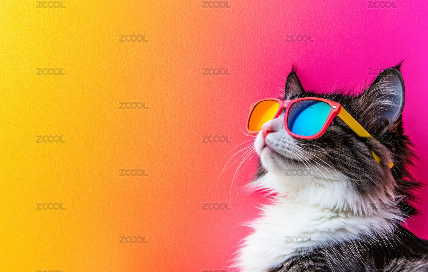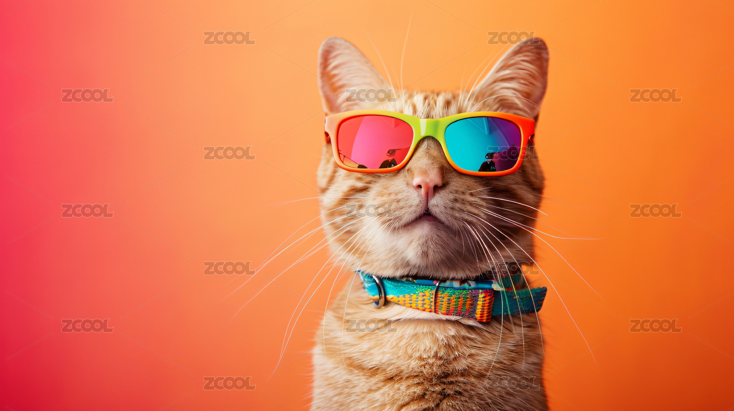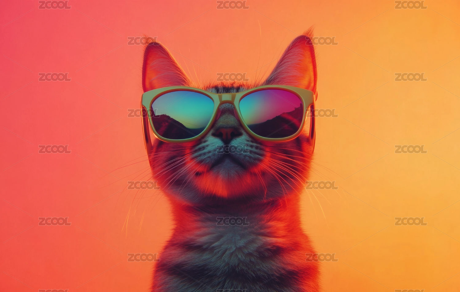 戴太阳镜的橘猫,表情顽皮,毛发纹理细腻