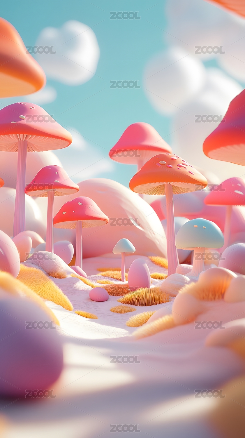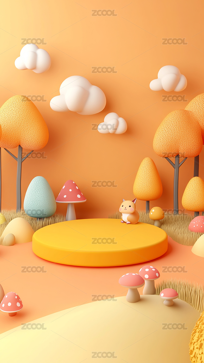 3D卡通可爱蘑菇童趣产品展台背景