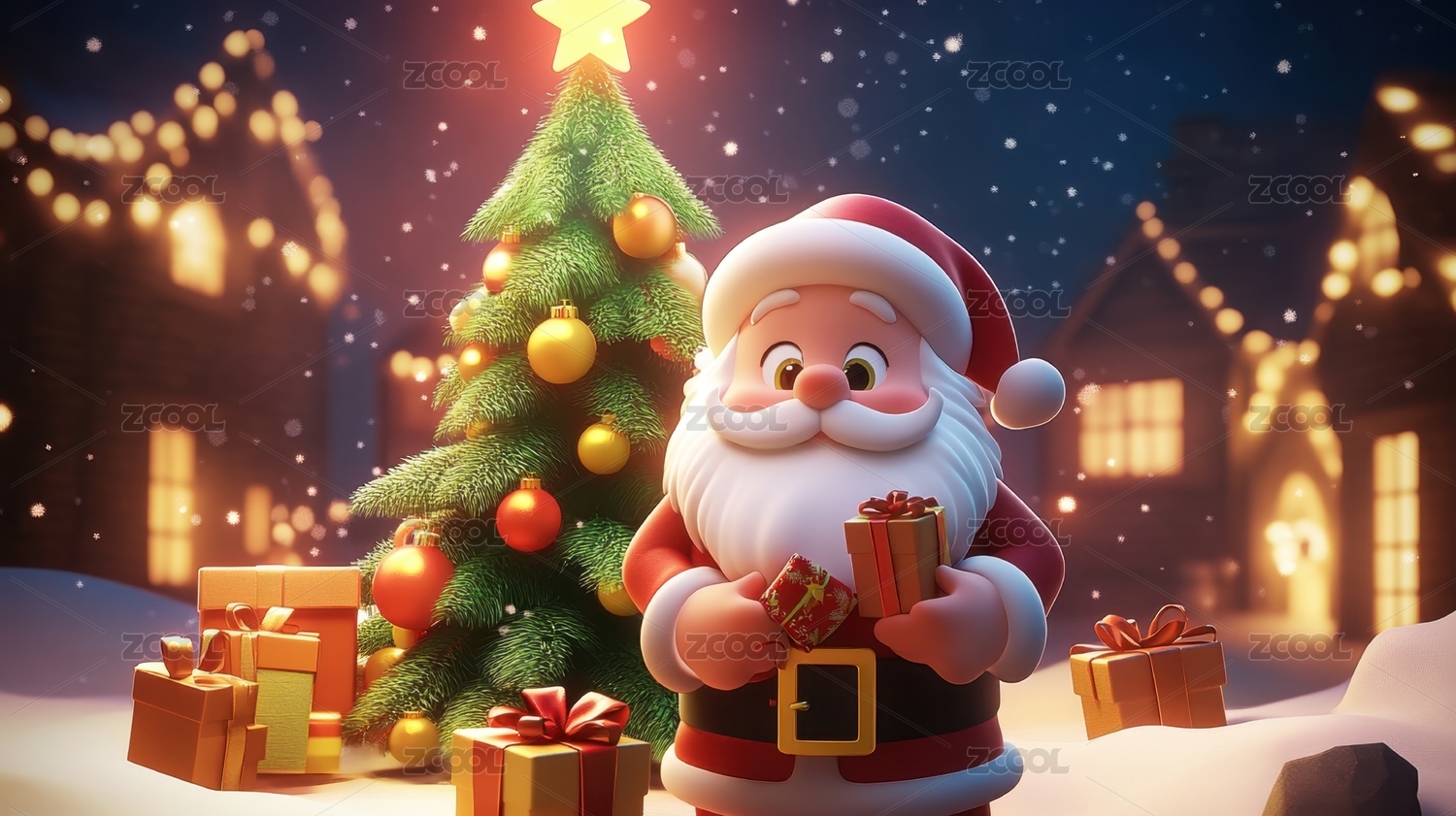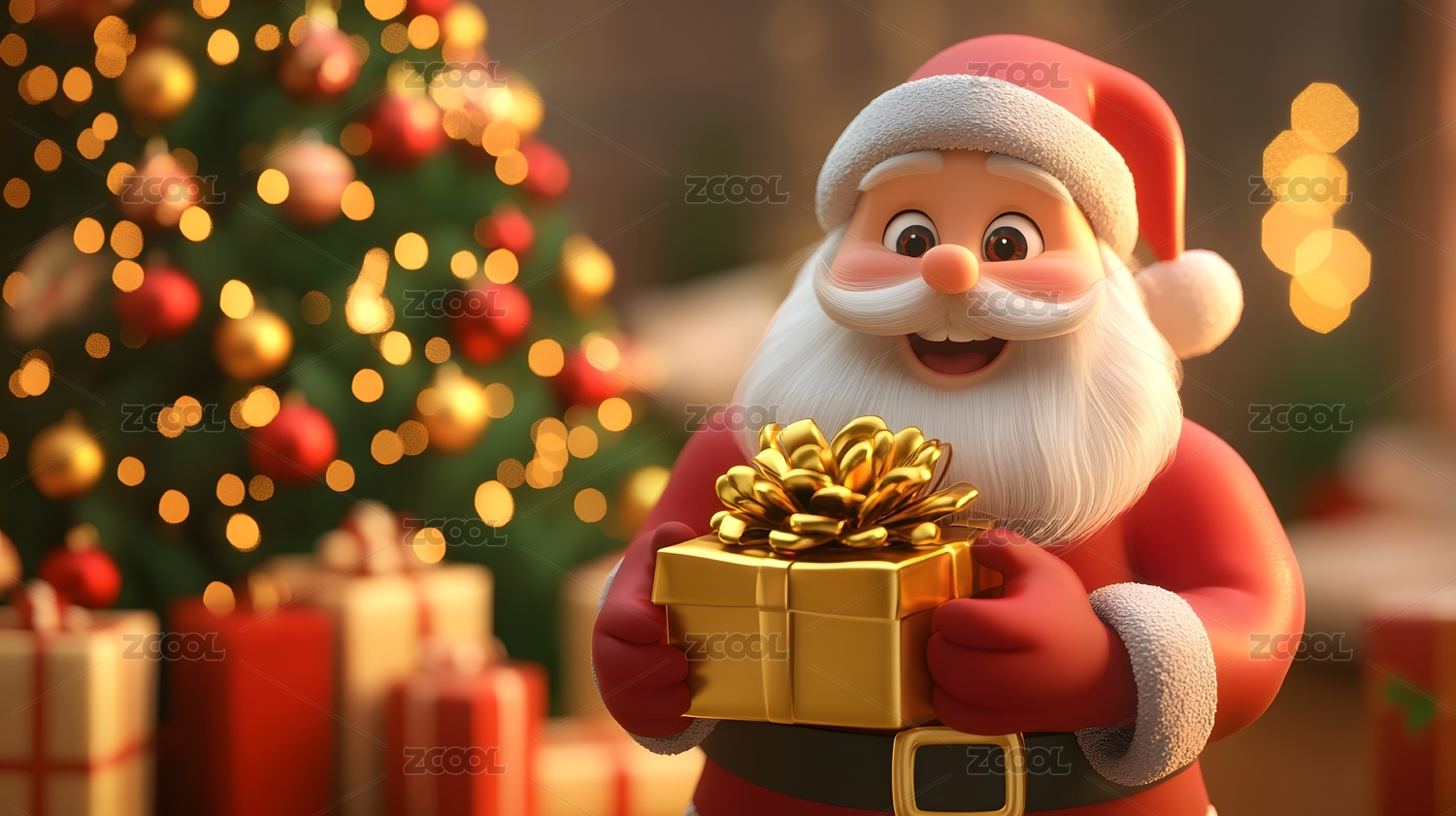 3d卡通抱着礼物的圣诞老人
