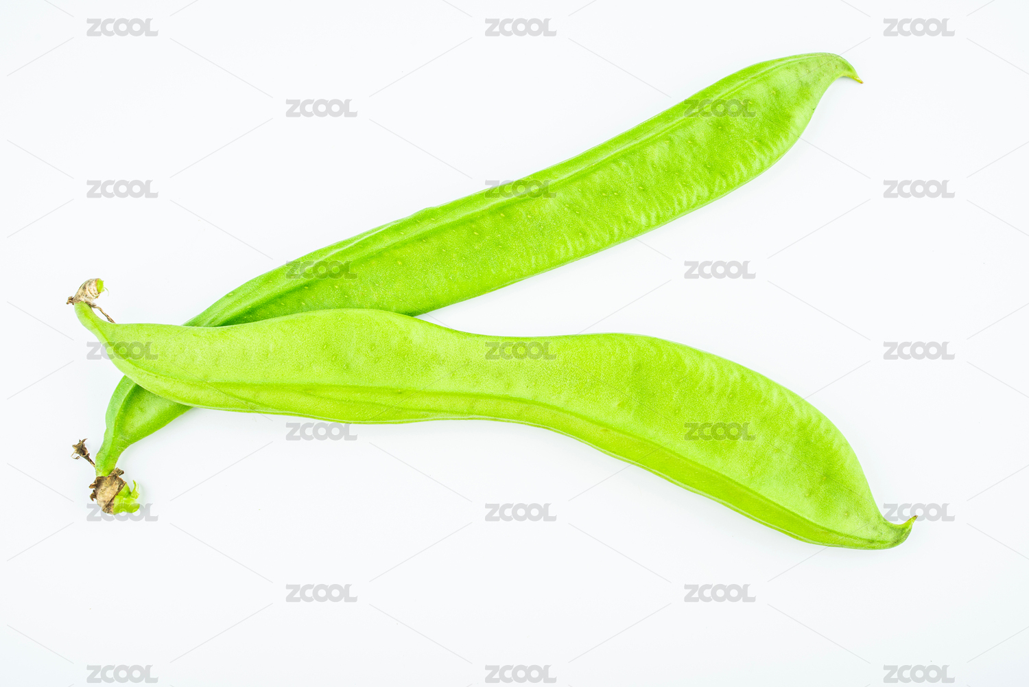 新鲜的四季豆放在白色背景上面