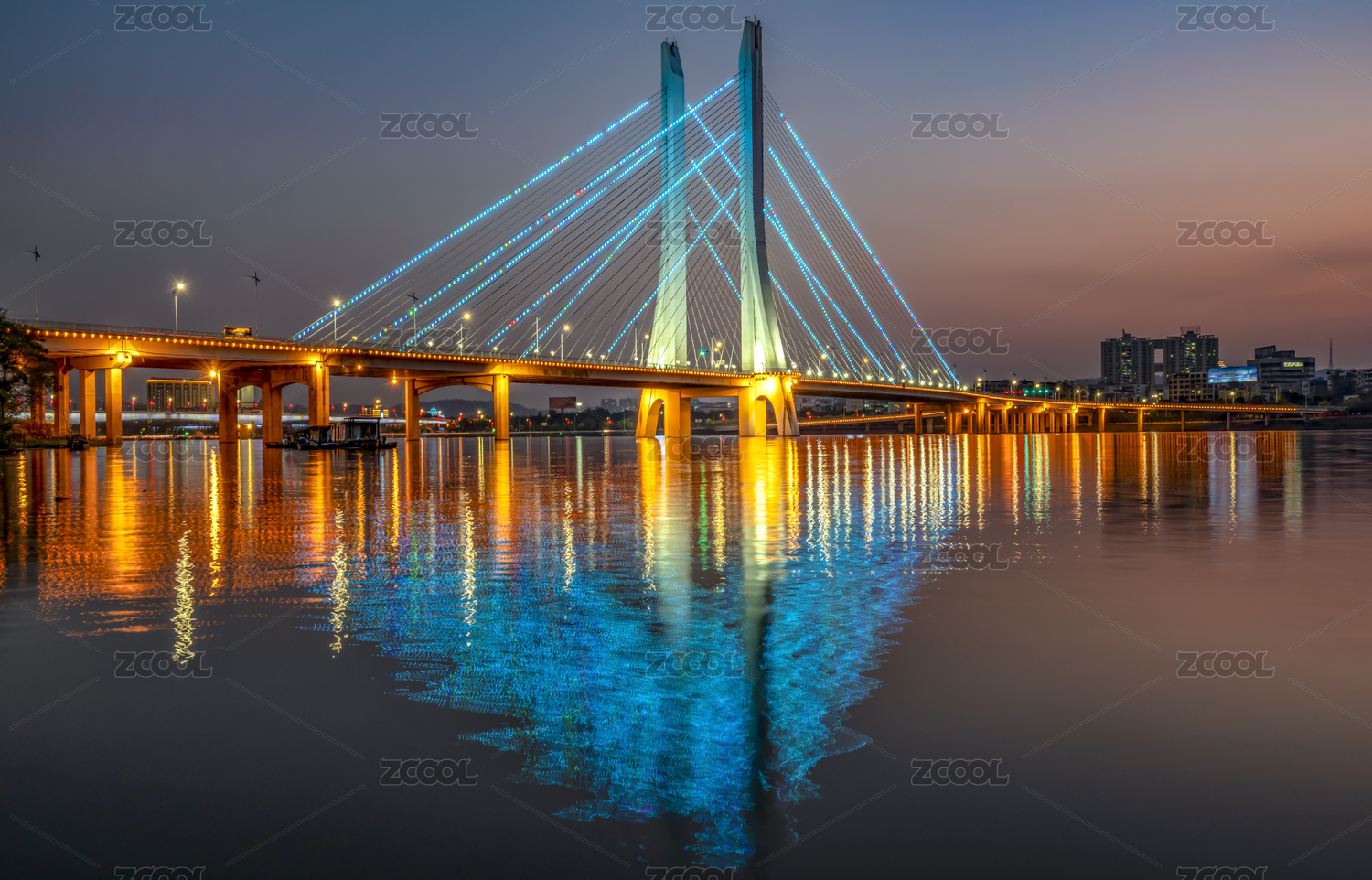 广州珠江海心桥与珠江新城高楼建筑黄昏景色