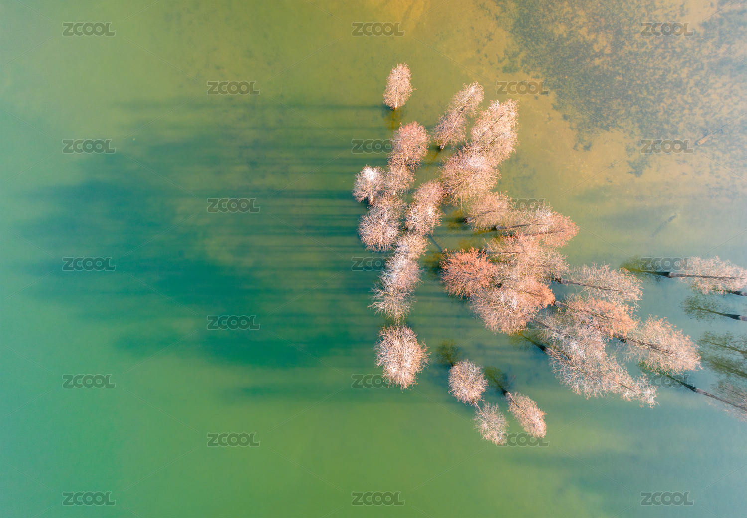宁波余姚市四明湖的水杉风光