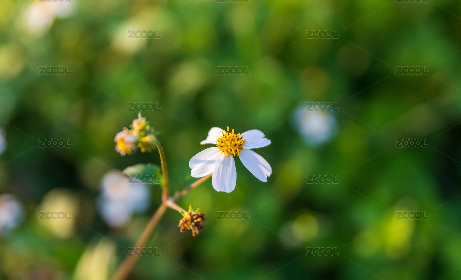 早春绿色小清新白色小野花