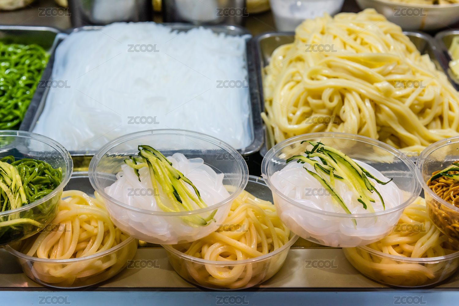 不锈钢橱柜中的麻辣烫涮多种食物